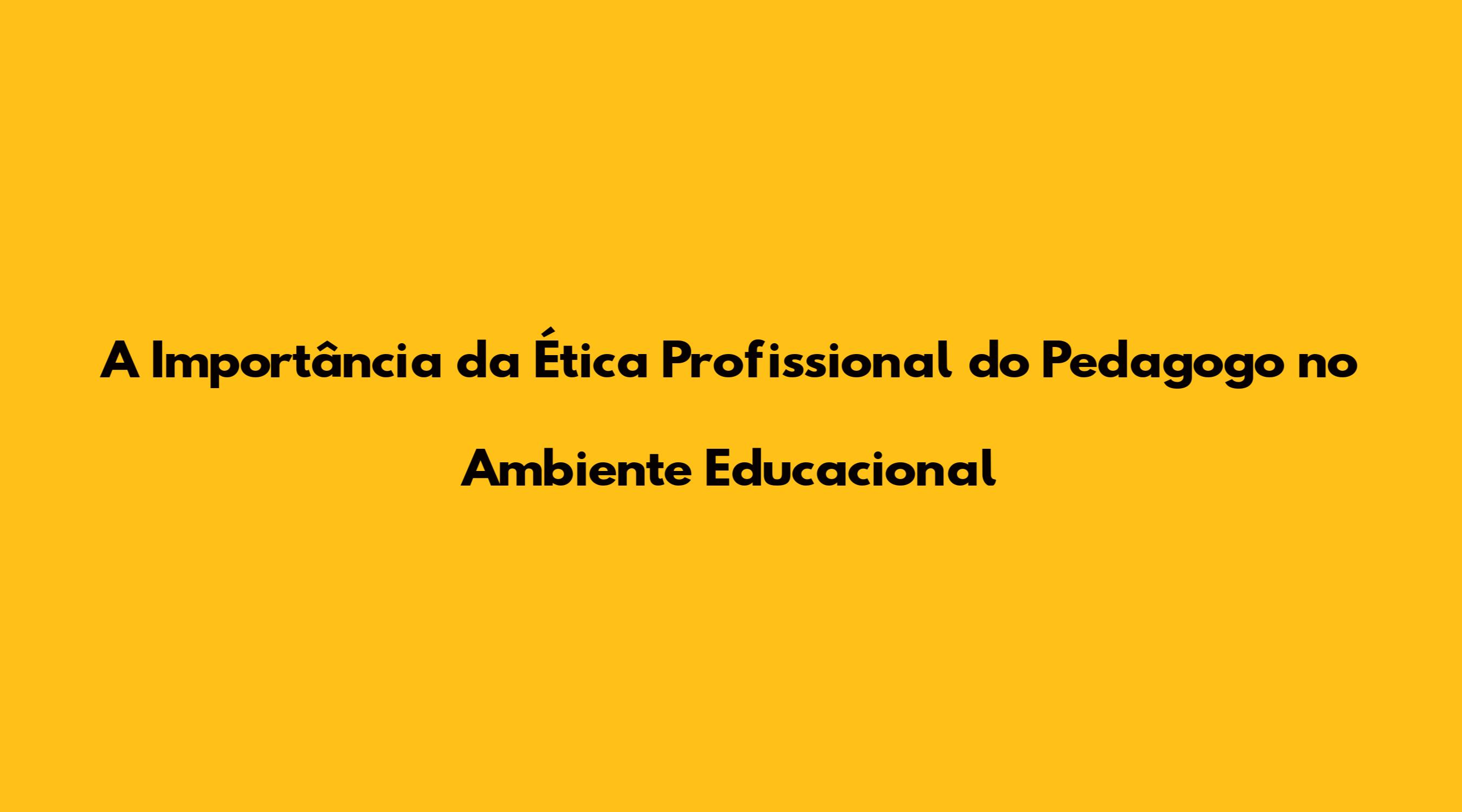 A Importância Da Ética Profissional Do Pedagogo No Ambiente Educacional