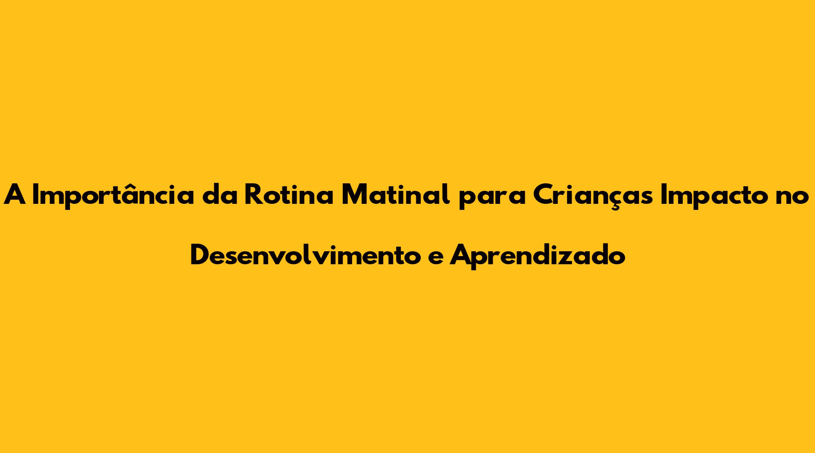 A Importância Da Rotina Matinal Para Crianças Impacto No Desenvolvimento E Aprendizado