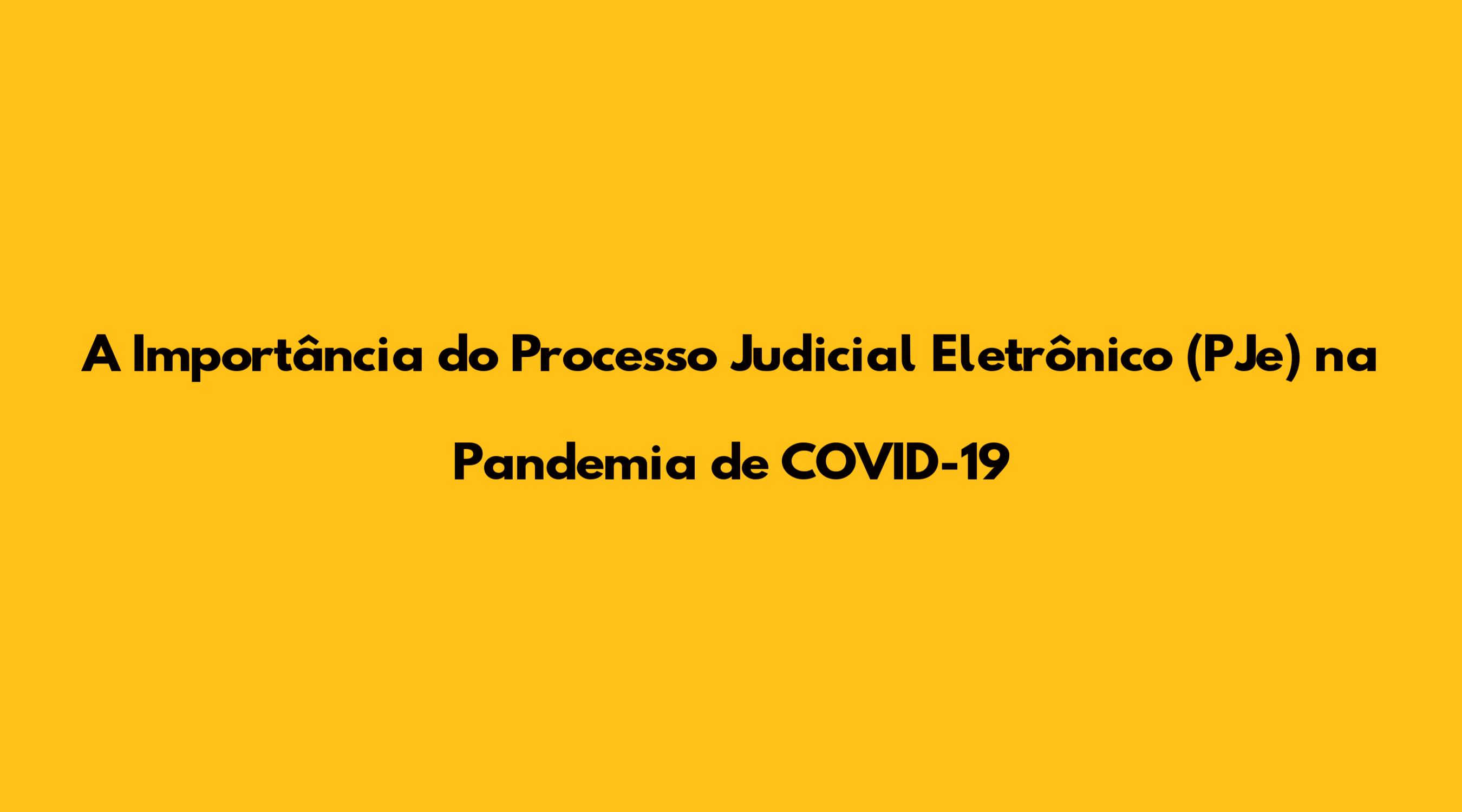 A Importância Do Processo Judicial Eletrônico (PJe) Na Pandemia De COVID-19