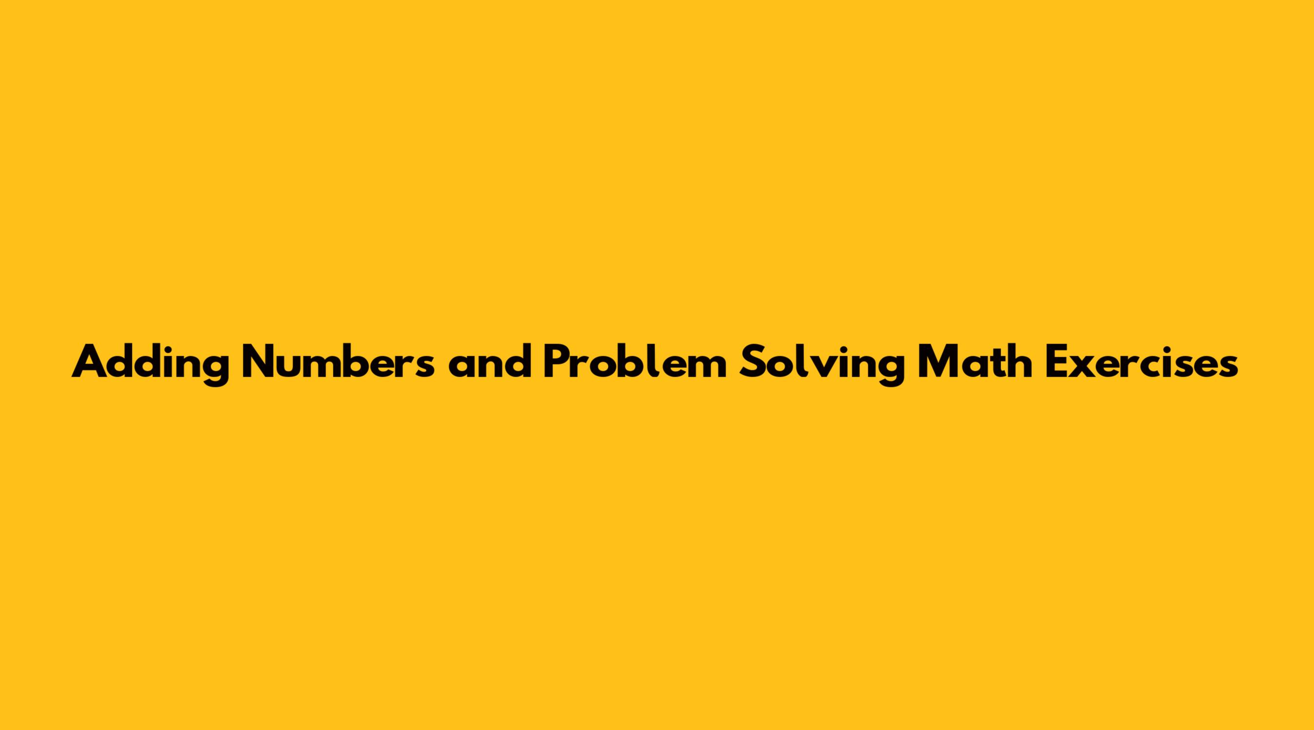 Adding Numbers And Problem Solving Math Exercises