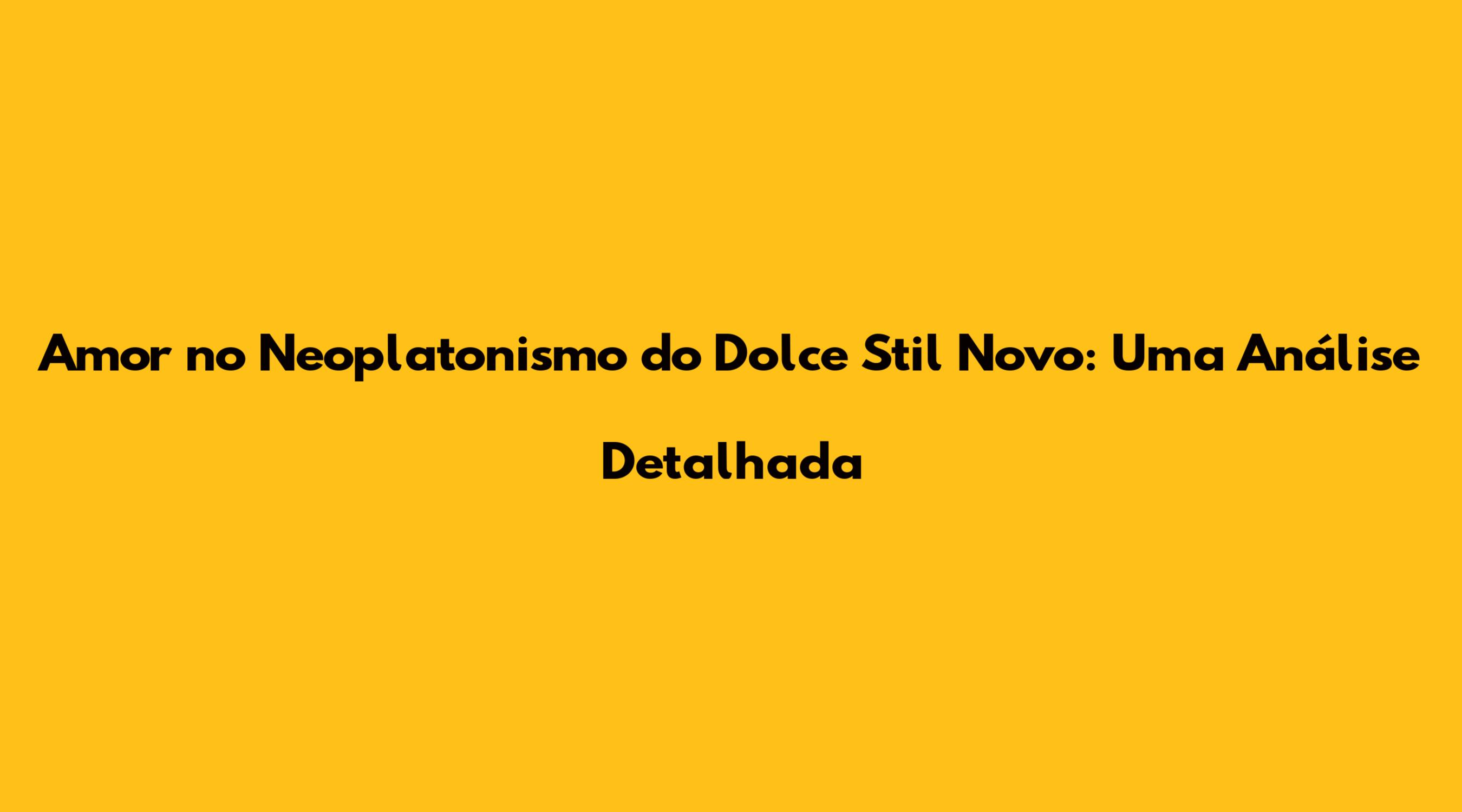 Amor E Neoplatonismo No Dolce Stil Novo Uma Análise Detalhada