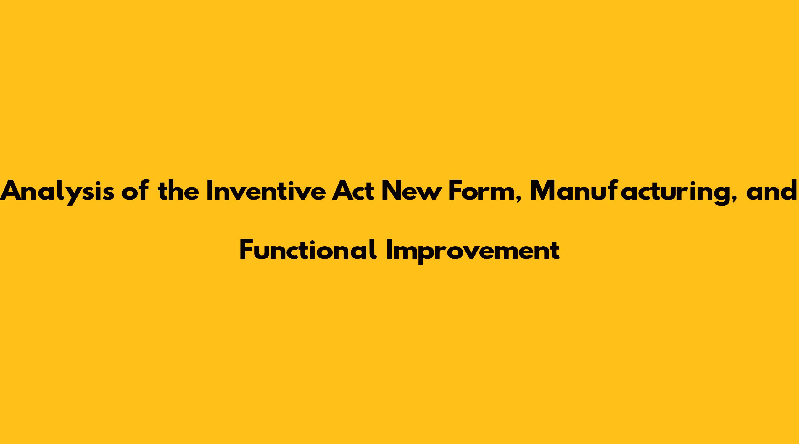 Analysis Of The Inventive Act New Form, Manufacturing, And Functional Improvement