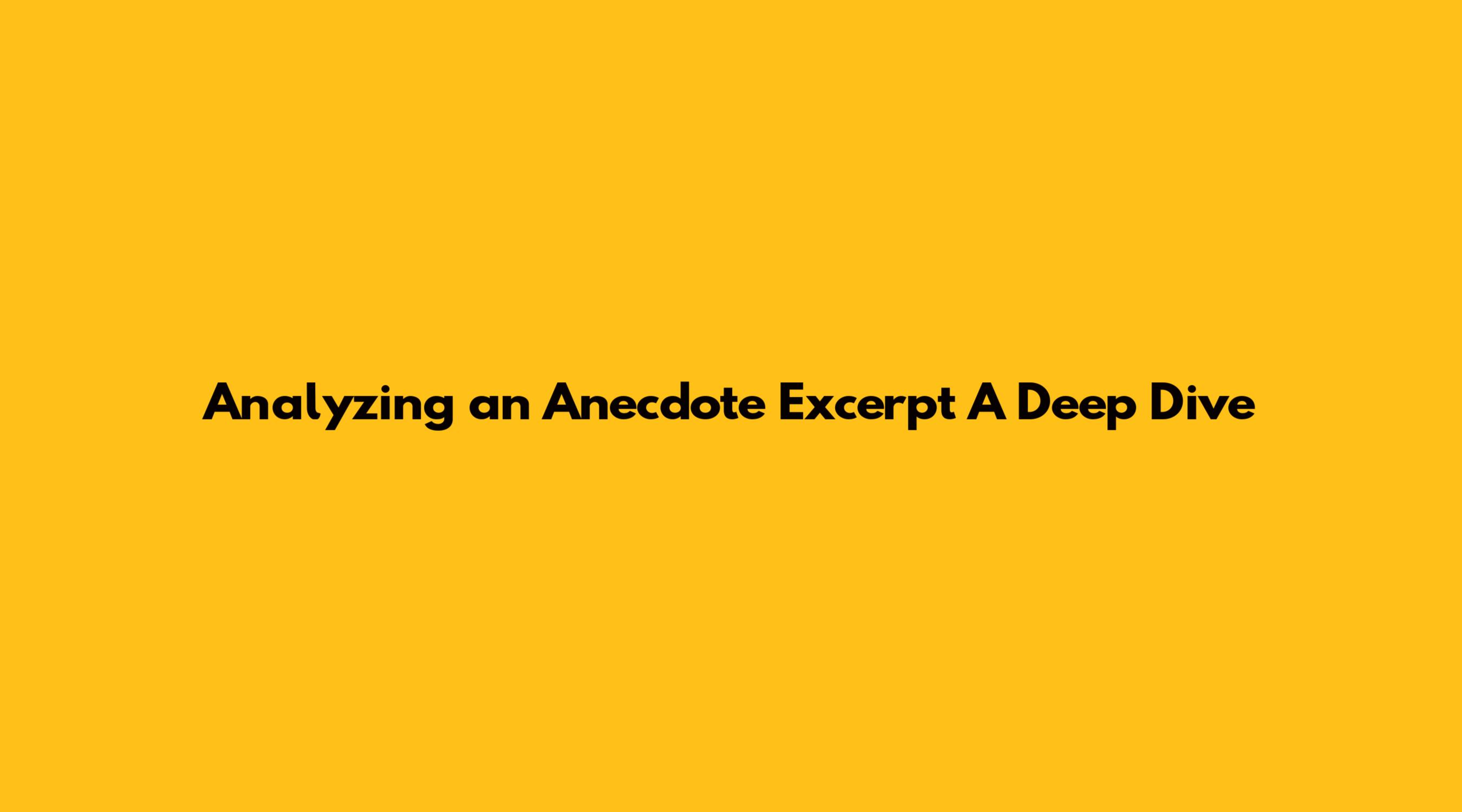 Hey guys! Ever stumbled upon a story that just makes you think, maybe even chuckle a bit? That's the magic of anecdotes! They're like these tiny windows into bigger ideas, often wrapped up in a funny or thought-provoking package. Today, we're going to dive deep into analyzing an anecdote excerpt, breaking down what makes it tick and how it gets its message across. We'll be focusing on how the characters interact, the underlying message, and the literary devices that make it all work. So, buckle up and let's get started!