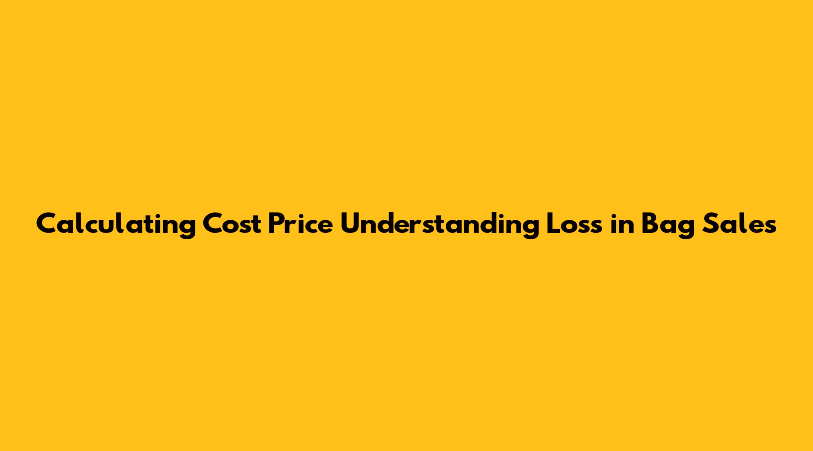 Okay, before we jump into the problem, let's make sure we're all on the same page with some key terms. The cost price, often abbreviated as CP, is the amount a shopkeeper or seller originally pays for an item. Think of it as the price tag the shopkeeper sees when they buy the product from their supplier. It’s the starting point of the whole buying and selling journey. Now, loss happens when you sell something for less than what you bought it for. It's like selling a chocolate bar you bought for $2, but you sell it to your friend for $1. You've made a loss of $1. Understanding these two concepts is crucial for any business, big or small. It helps in pricing products effectively and ensuring you're not losing money in the long run. So, let’s keep these definitions in mind as we move forward. It’s the foundation for solving our bag problem!