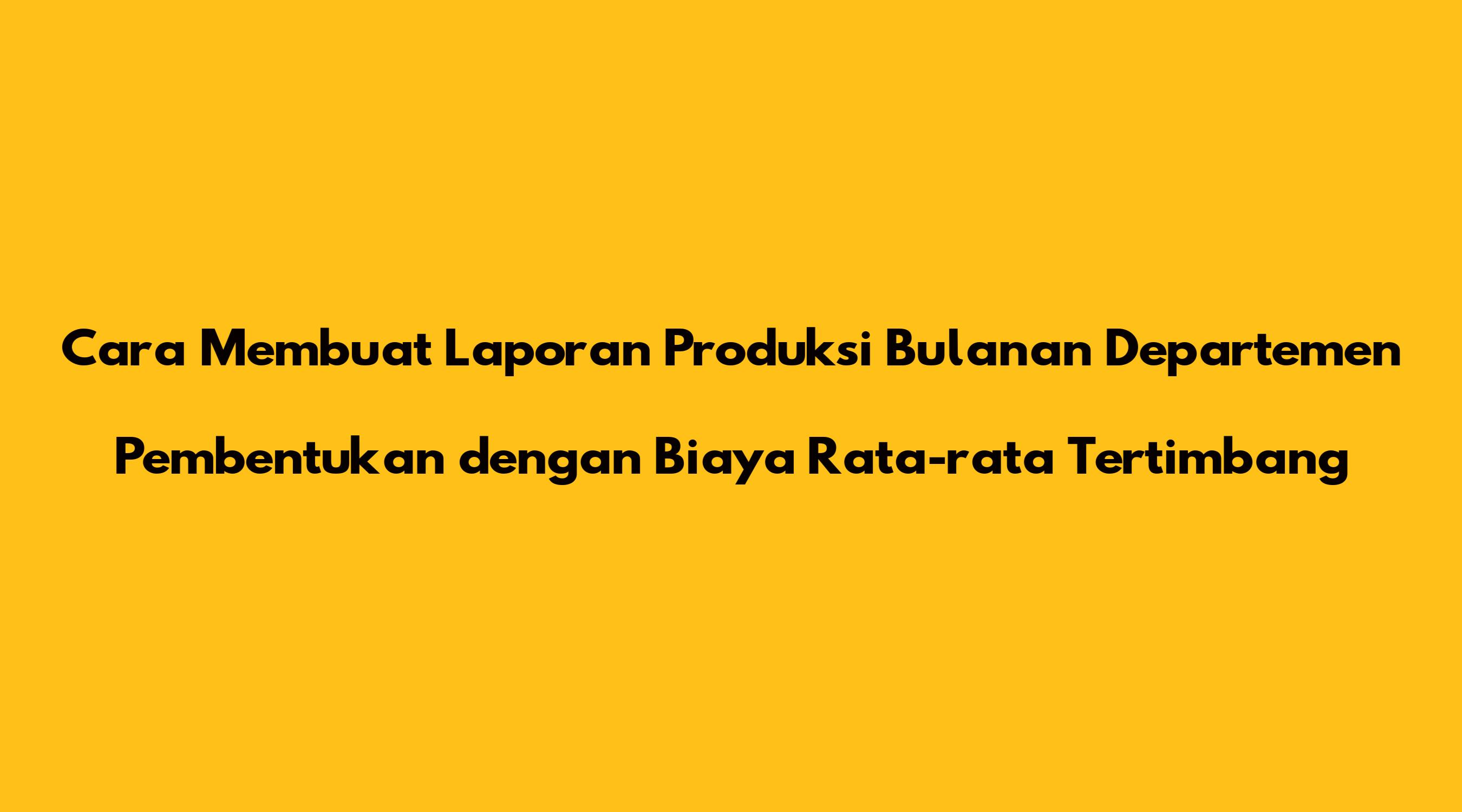 Hey guys! Pernah gak sih kalian diminta buat laporan produksi bulanan, khususnya buat departemen pembentukan? Atau mungkin kalian lagi penasaran gimana sih caranya bikin laporan biaya produksi yang akurat dengan metode biaya rata-rata tertimbang? Nah, kebetulan banget nih! Di artikel ini, kita bakal bahas tuntas cara bikin laporan produksi bulanan untuk departemen pembentukan, lengkap dengan contoh dan penjelasan detail tentang metode biaya rata-rata tertimbang. Yuk, simak baik-baik!