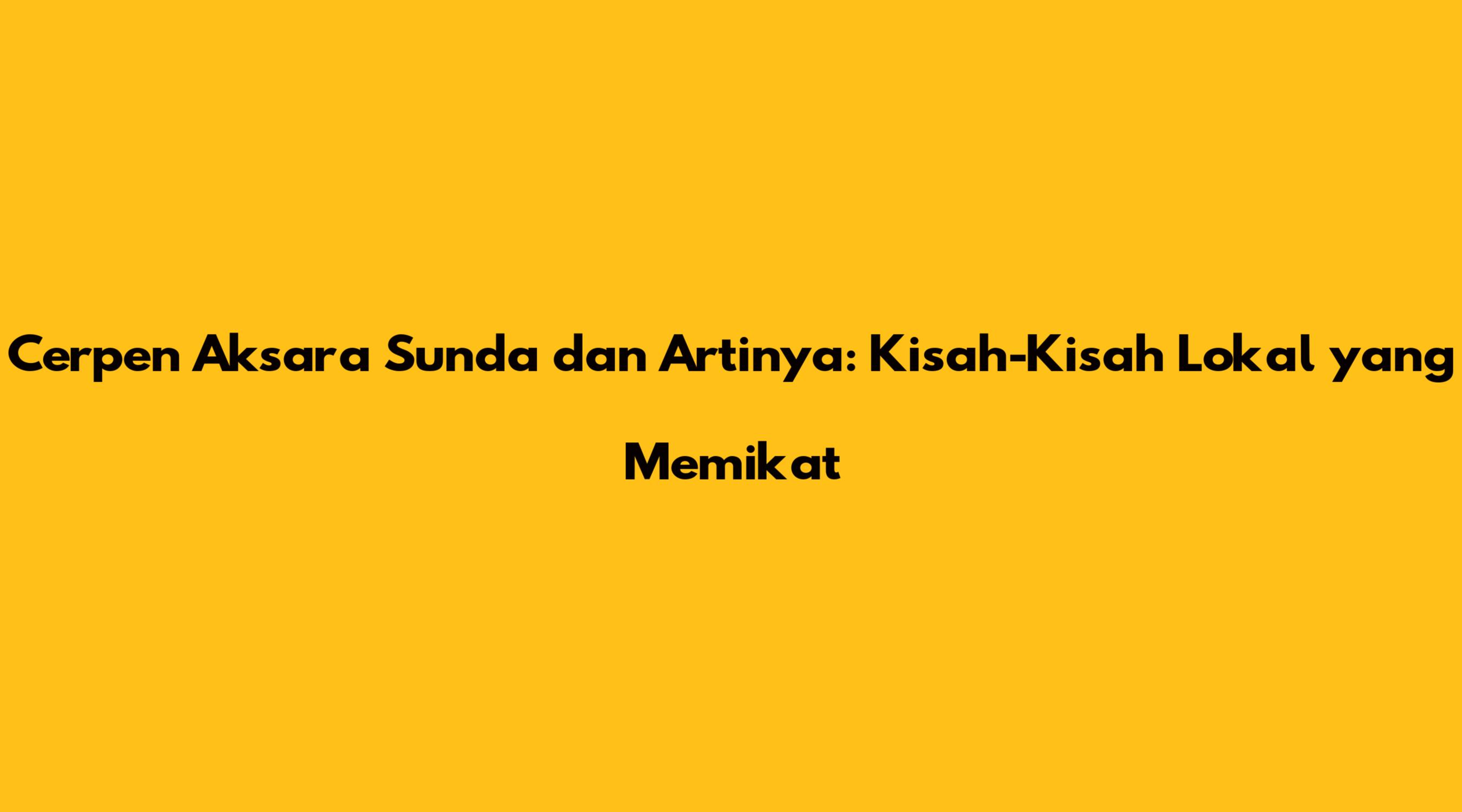 Cerpen Aksara Sunda Dan Artinya: Kisah-Kisah Lokal Yang Memikat