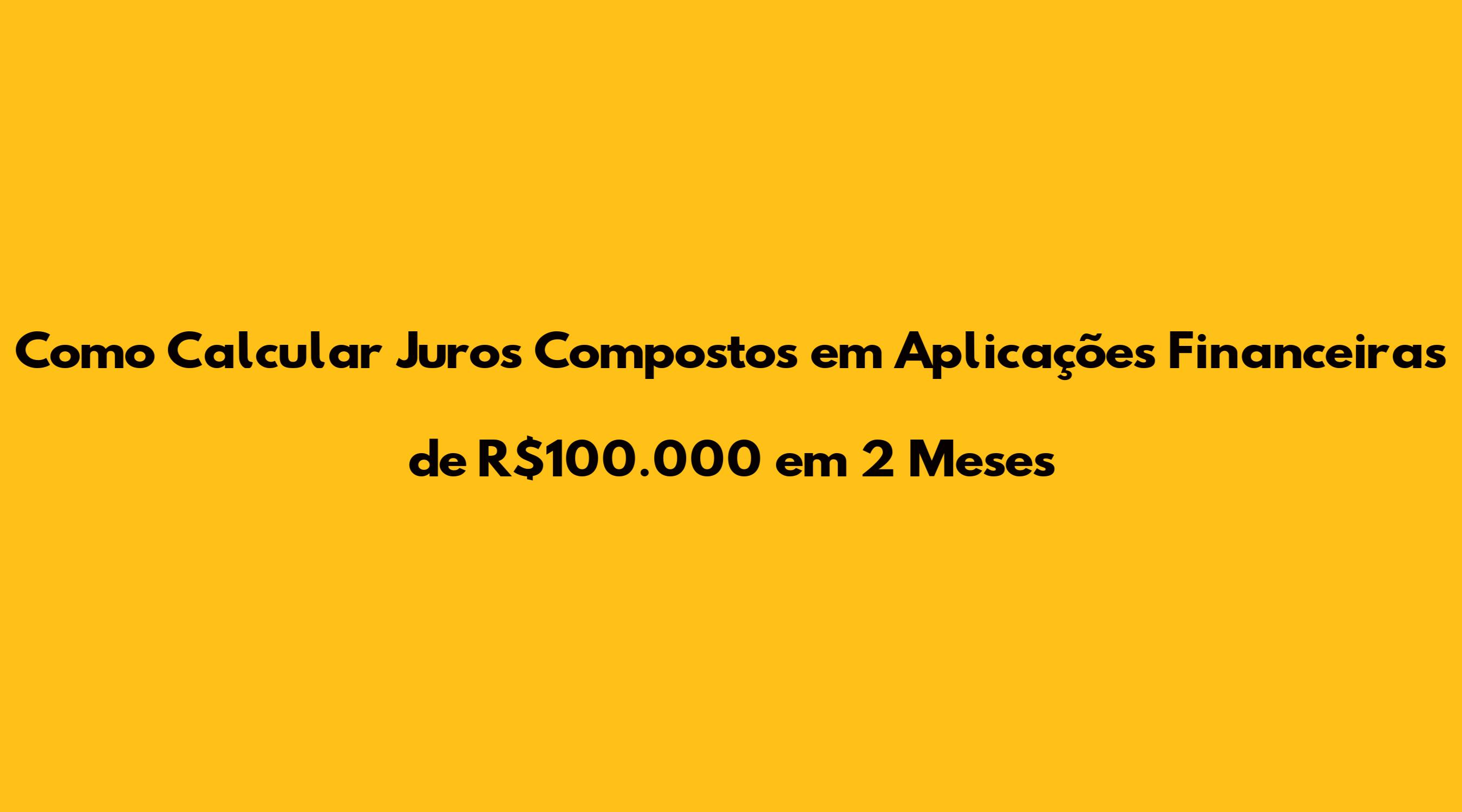 Como Calcular Juros Compostos Em Aplicações Financeiras De R$100.000 Em 2 Meses