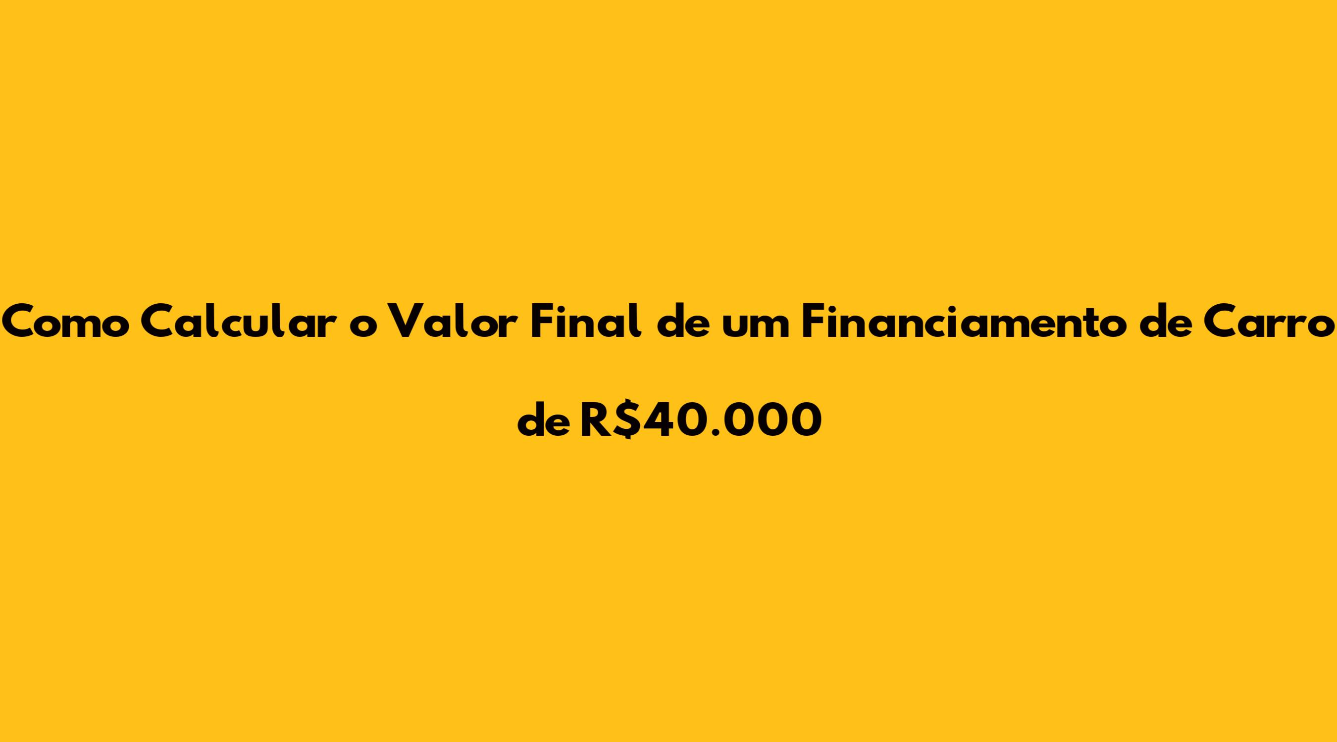 Como Calcular O Valor Final De Um Financiamento De Carro De R$40.000
