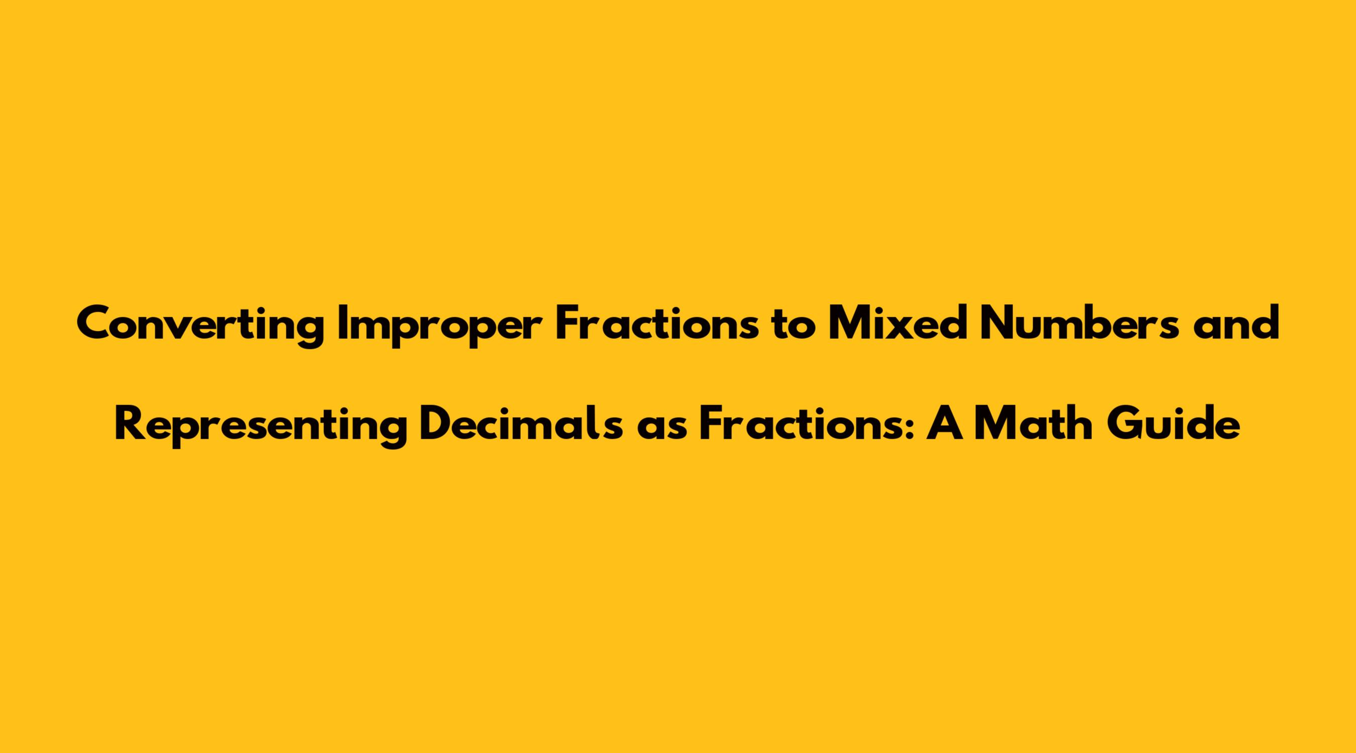 Converting Improper Fractions To Mixed Numbers And Representing Decimals As Fractions A Math Guide