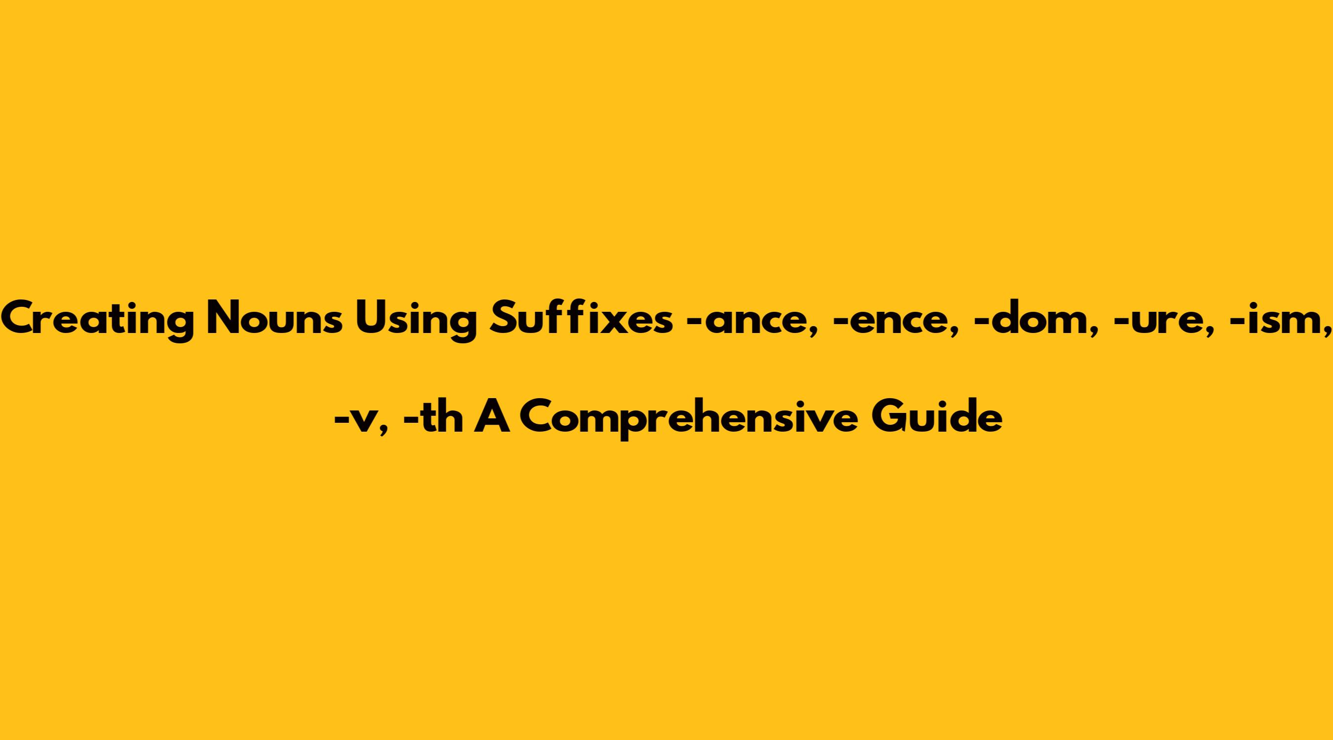 Hey guys! Today, we're diving deep into the fascinating world of noun formation in English. Specifically, we're going to explore how to create nouns from other words by adding suffixes like -ance, -ence, -dom, -ure, -ism, -th, and -v. This is super useful for expanding your vocabulary and understanding how words work. So, grab your linguistic hats, and let's get started!