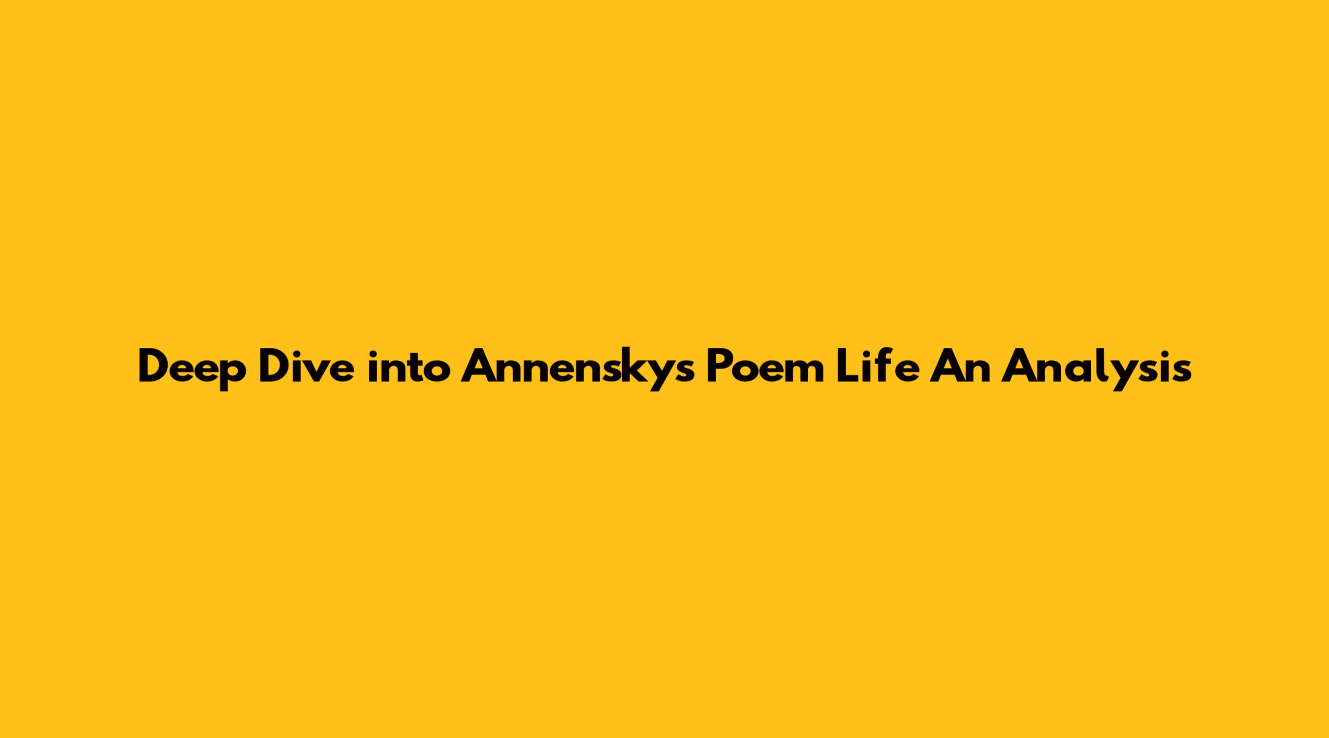 Deep Dive Into Annensky's Poem Life An Analysis