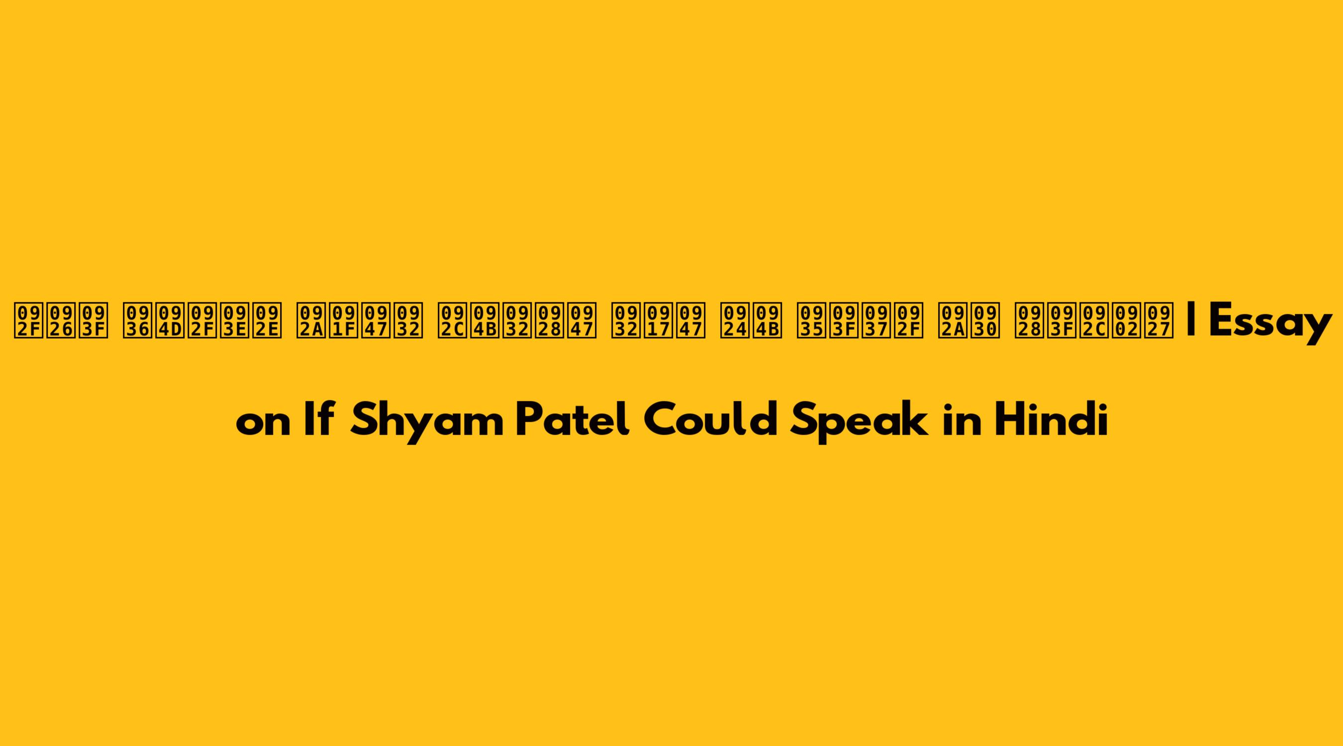 यदि श्याम पटेल बोलने लगे तो विषय पर निबंध | Essay On If Shyam Patel Could Speak In Hindi