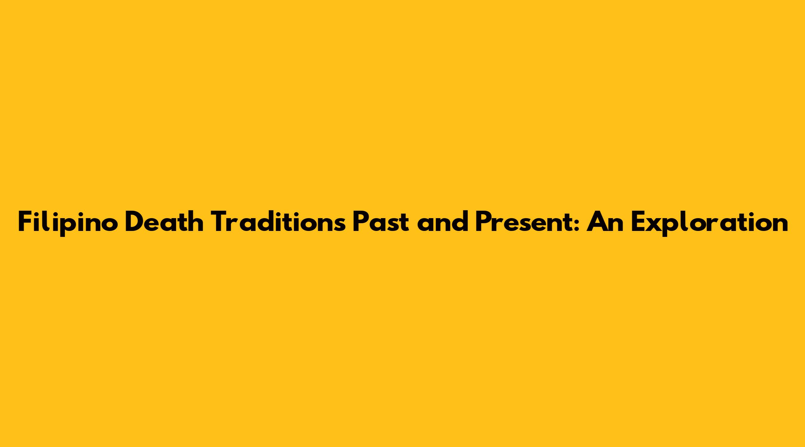 Filipino Death Traditions Past And Present An Exploration