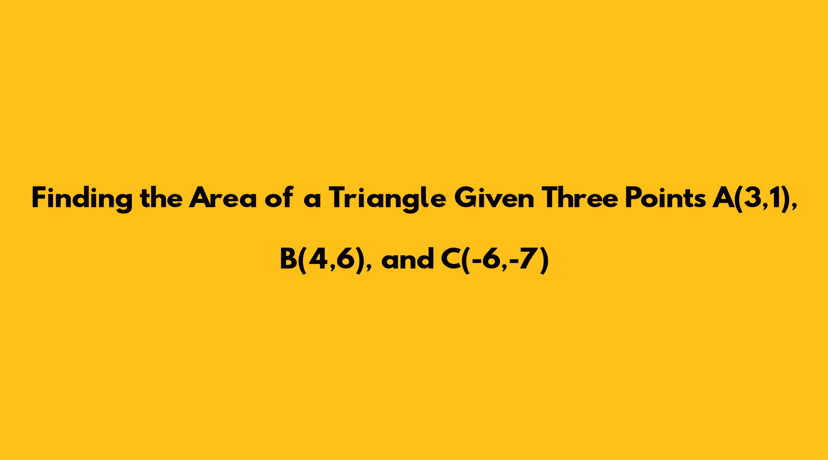 Finding The Area Of A Triangle Given Three Points A(3,1), B(4,6), And C(-6,-7)