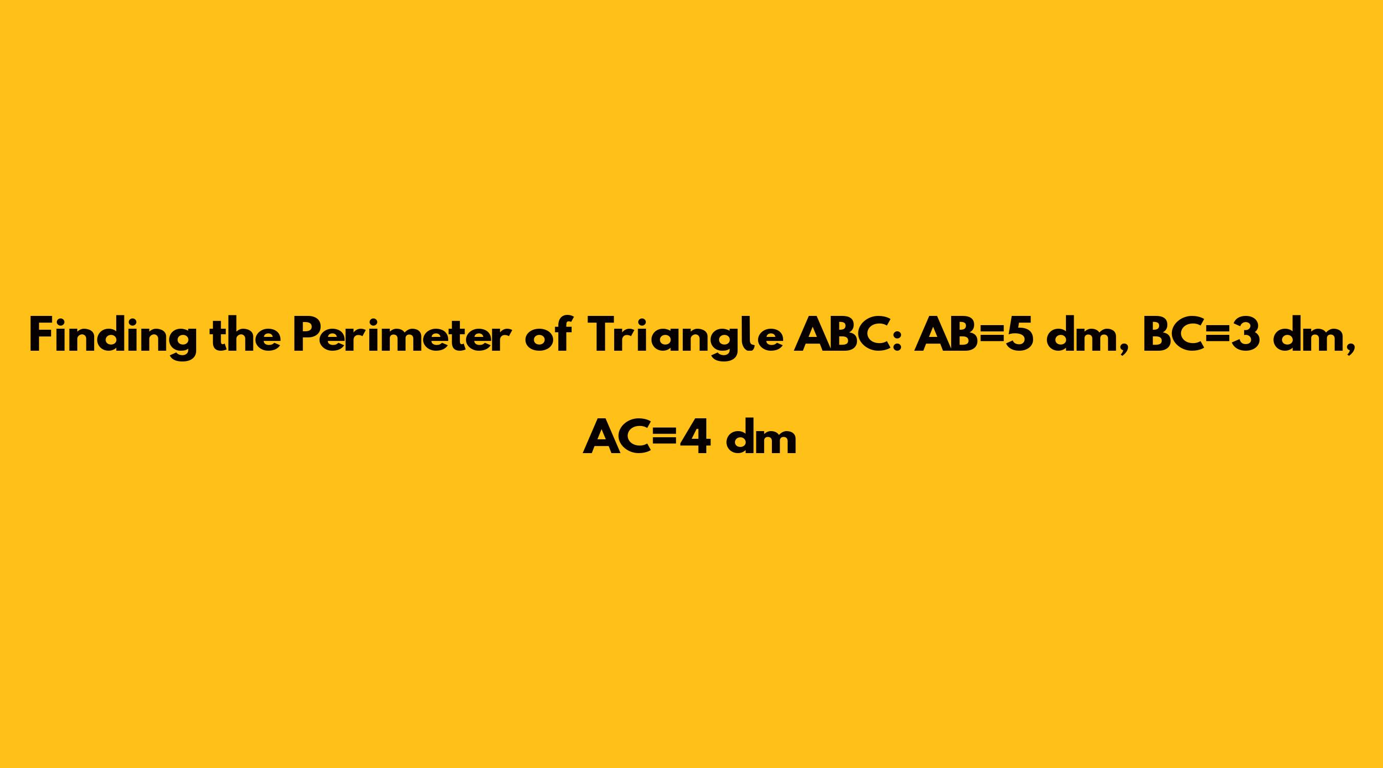 Hey guys! Today, let's dive into a cool geometry problem where we need to find the perimeter of a triangle. Specifically, we're dealing with triangle ABC, and we've got the lengths of all three sides: AB is 5 dm, BC is 3 dm, and AC is 4 dm. Finding the perimeter is super straightforward, but let's break it down step by step so everyone's on the same page. This will not only help in solving this particular problem but also give a solid understanding of the concept of a perimeter, which is super useful in various real-life applications and other math problems. So, let’s get started and make sure we nail this concept!
