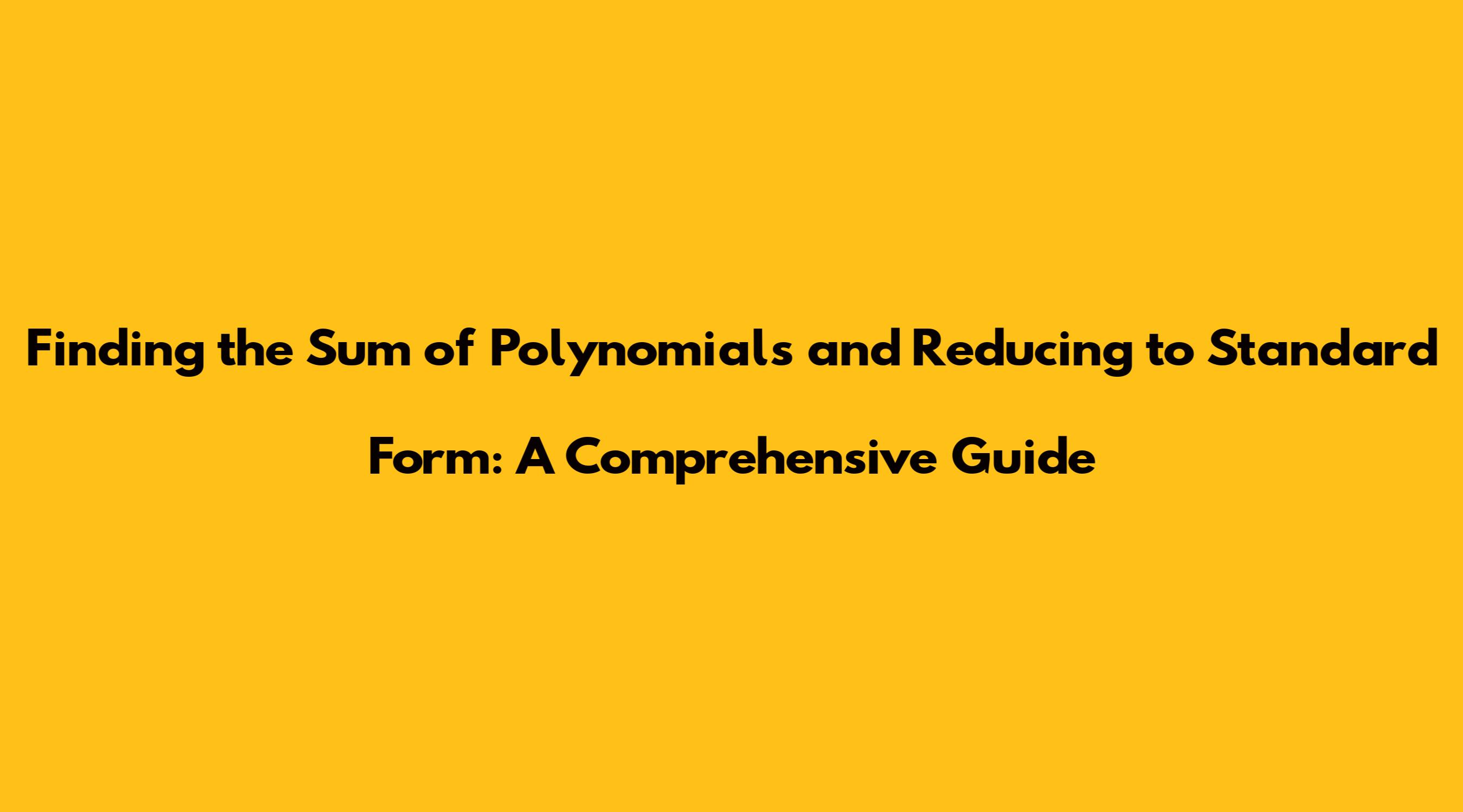 Finding The Sum Of Polynomials And Reducing To Standard Form A Comprehensive Guide