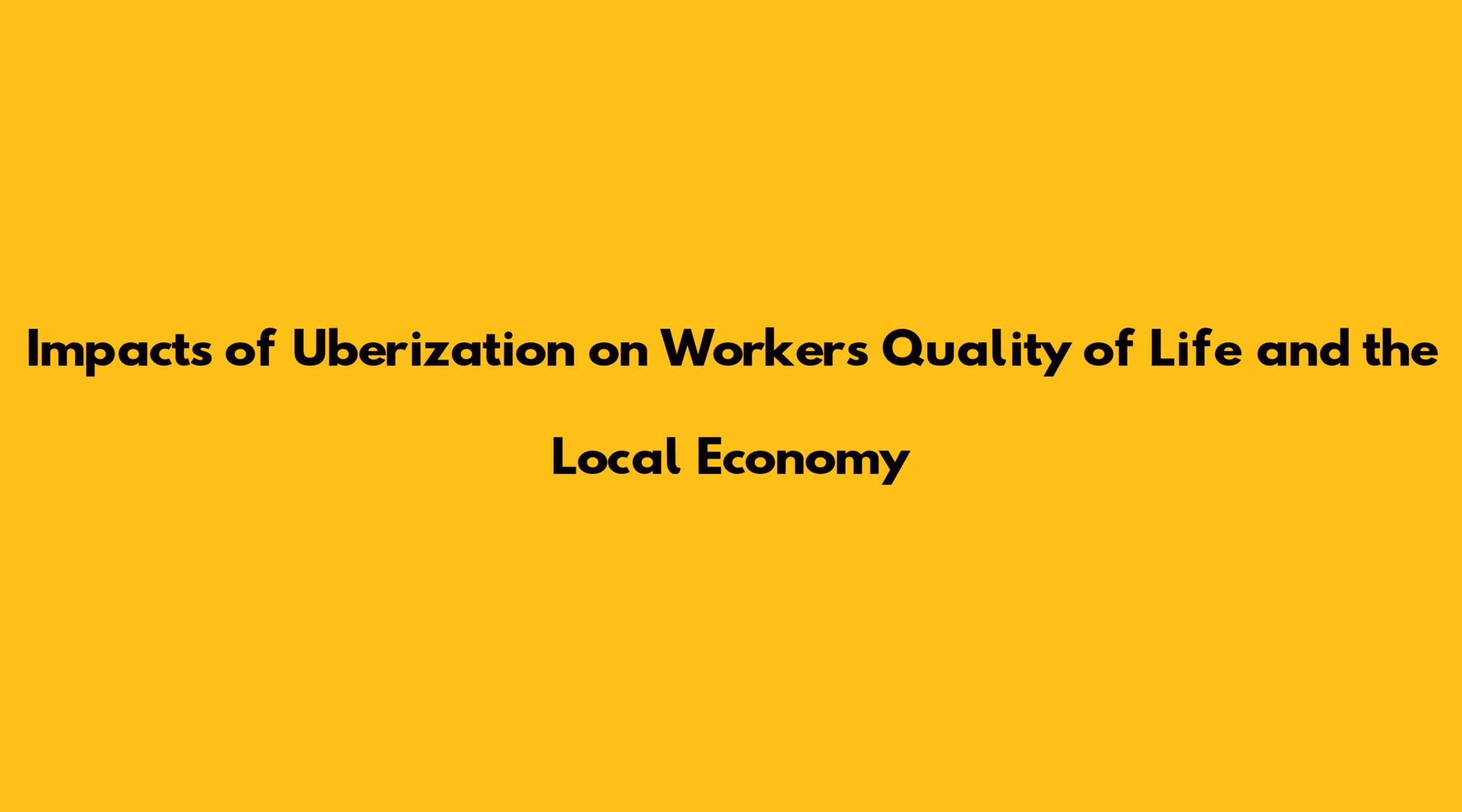 Impacts Of Uberization On Workers' Quality Of Life And The Local Economy