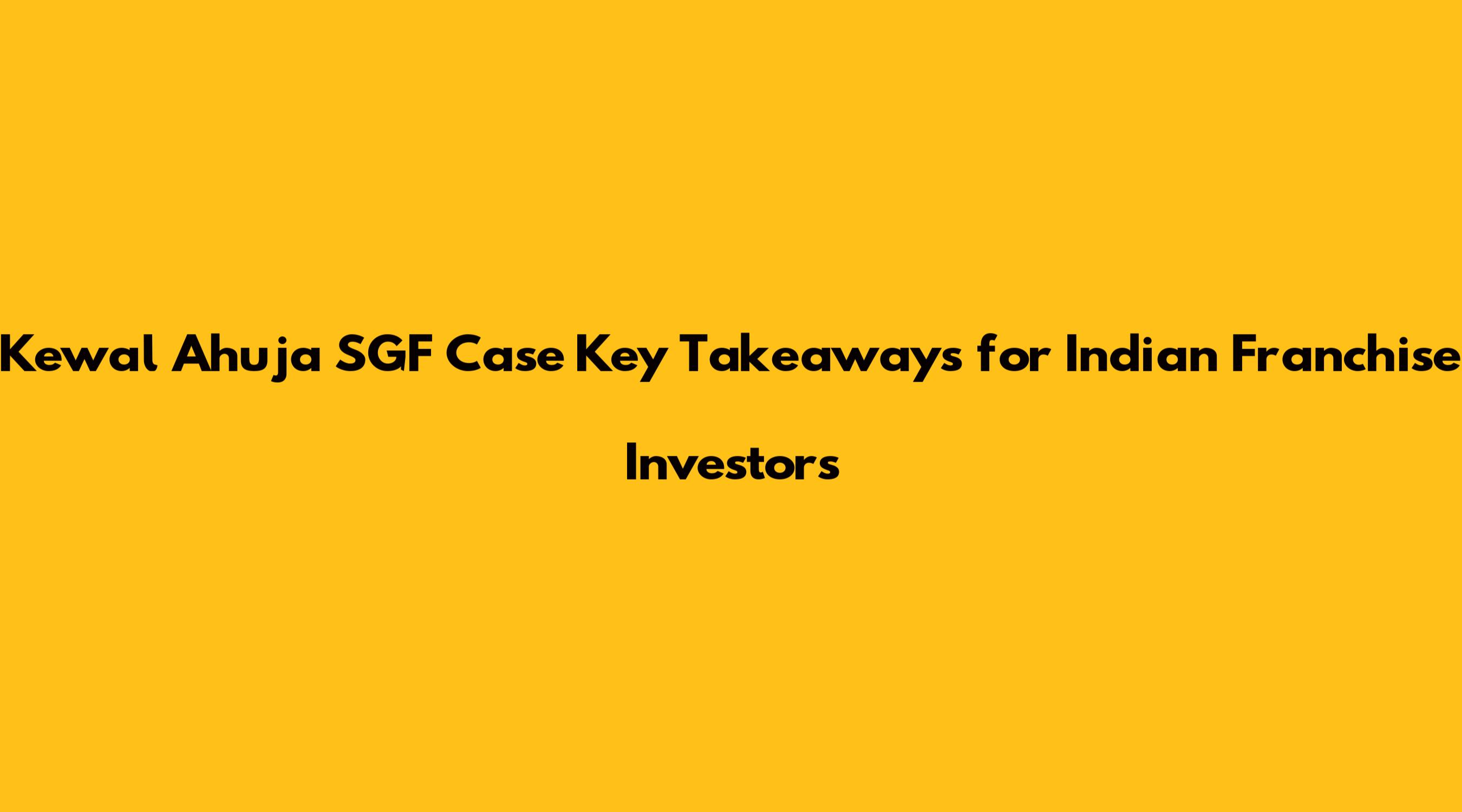 Kewal Ahuja SGF Case Key Takeaways For Indian Franchise Investors