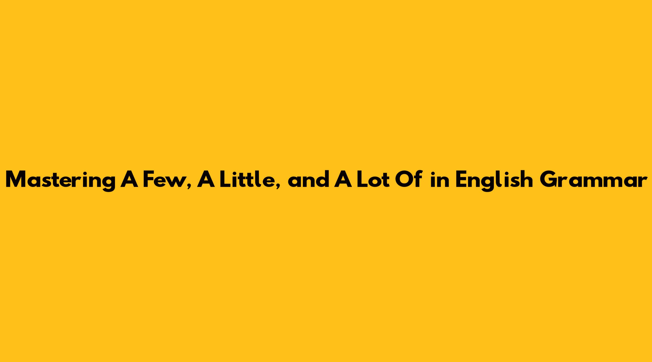 Mastering 'A Few,' 'A Little,' And 'A Lot Of' In English Grammar