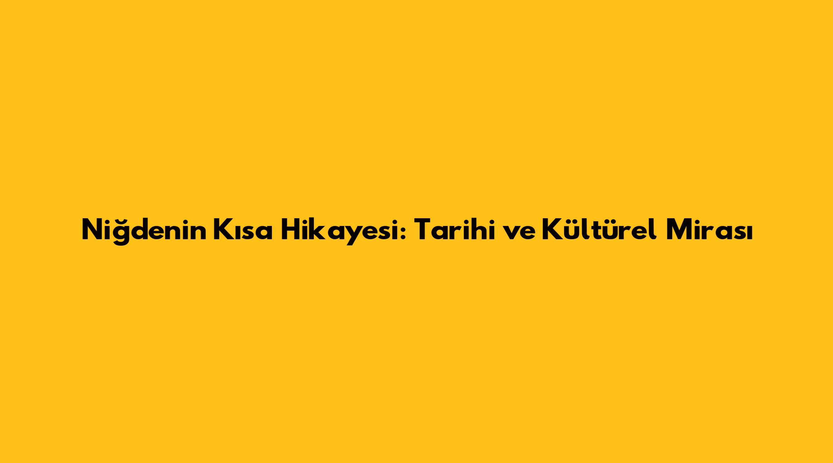 Niğde'nin Kısa Hikayesi: Tarihi Ve Kültürel Mirası