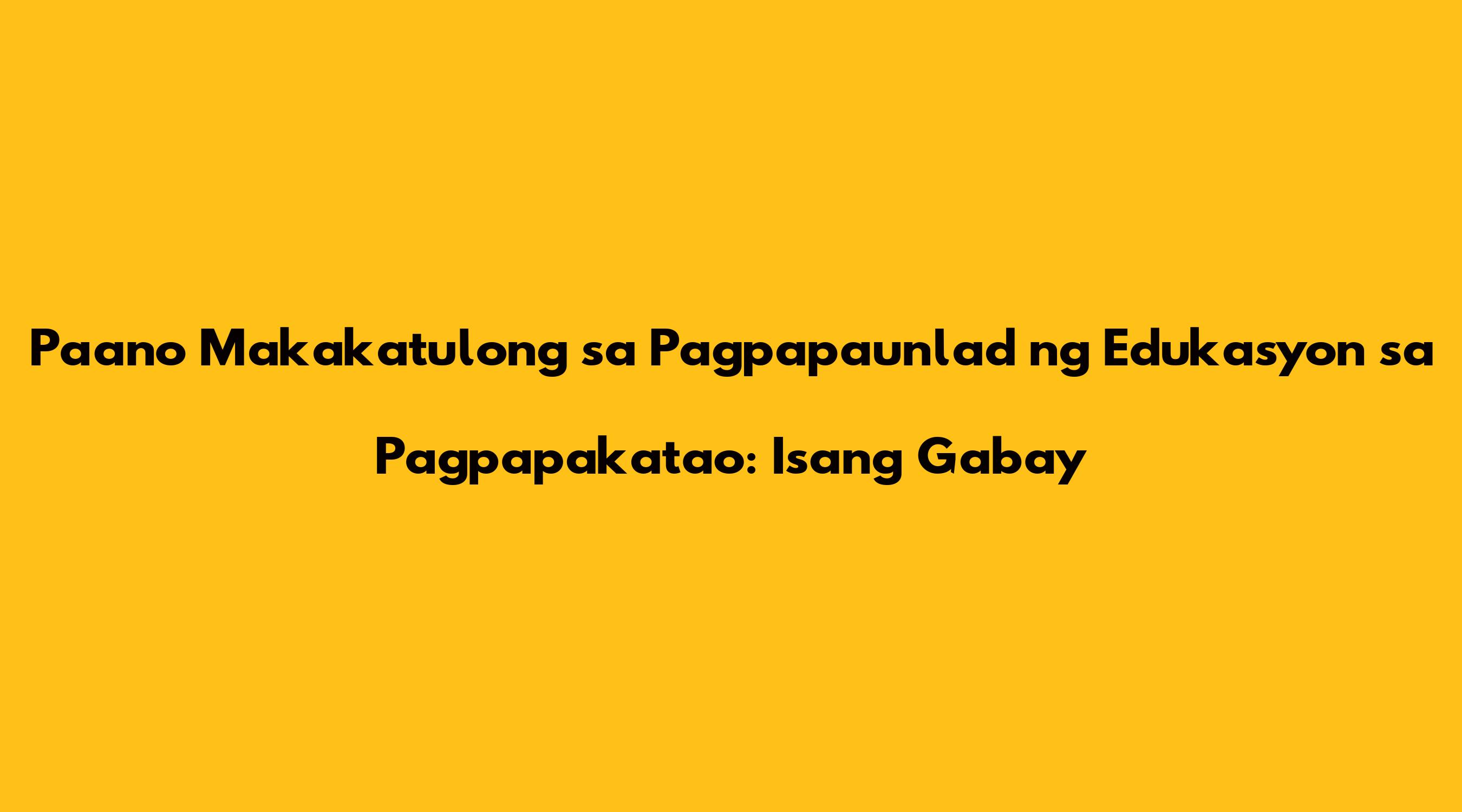 Paano Makakatulong Sa Pagpapaunlad Ng Edukasyon Sa Pagpapakatao Isang Gabay