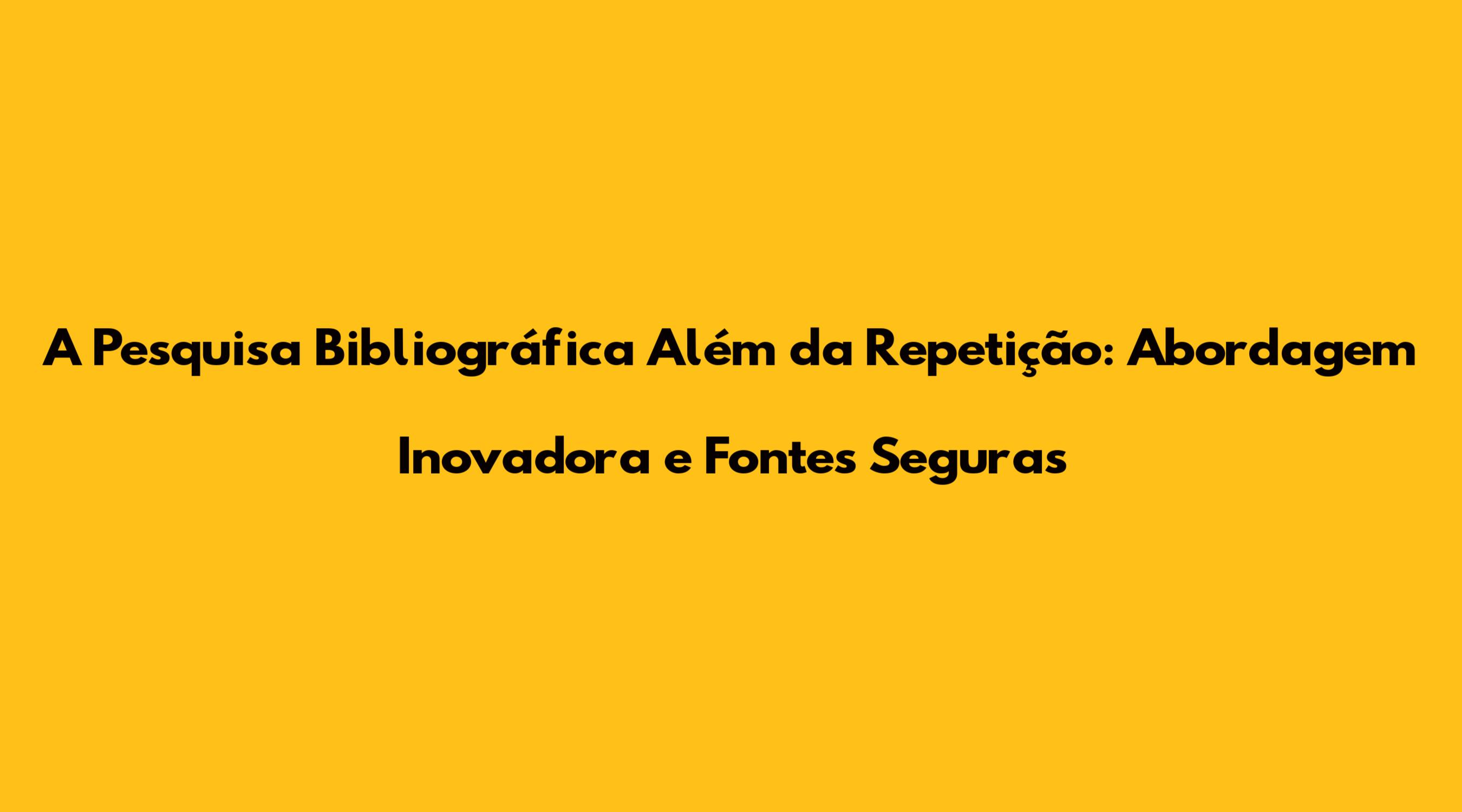 Pesquisa Bibliográfica Além Da Repetição: Abordagem Inovadora E Fontes Seguras