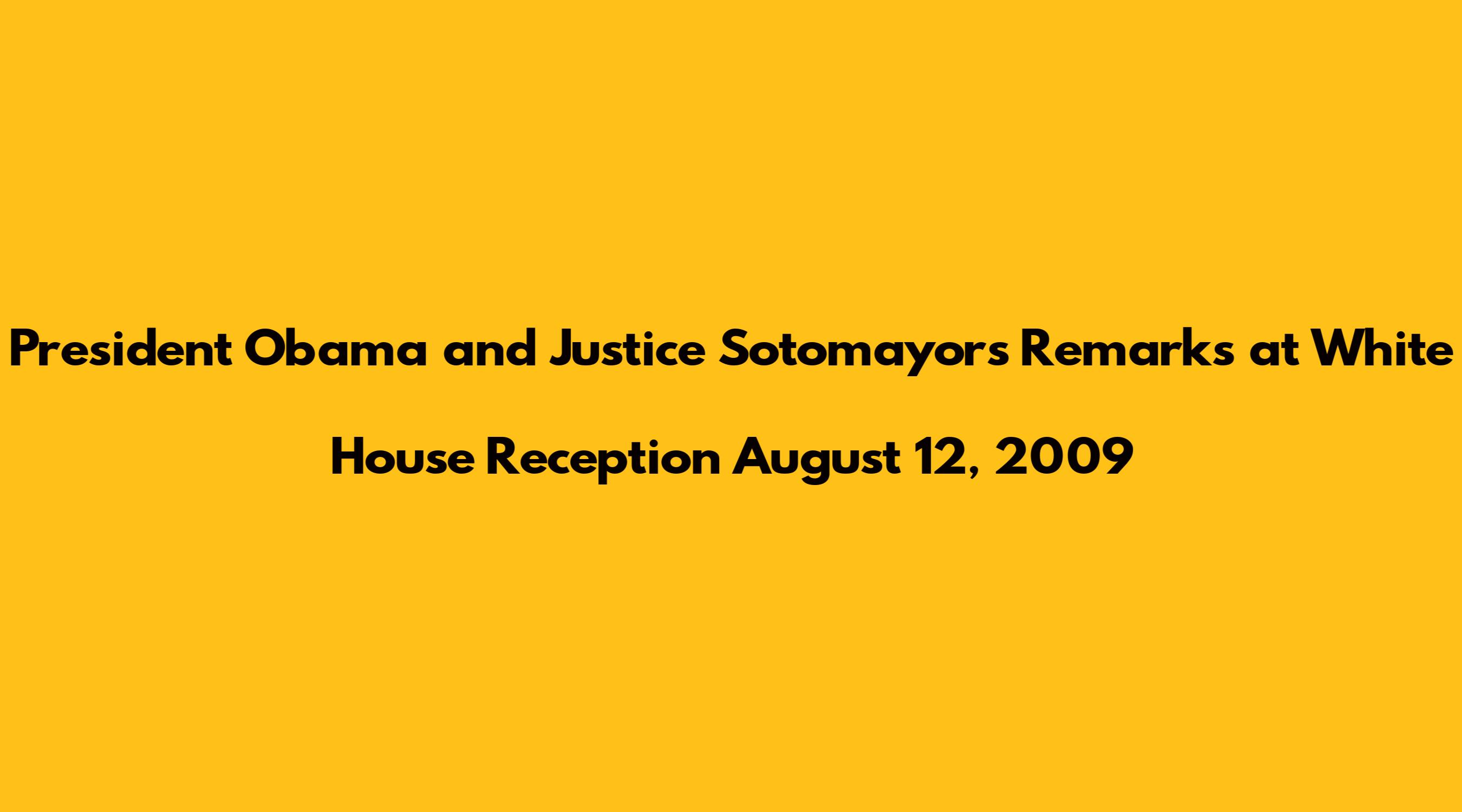 In conclusion, the remarks by President Obama and Justice Sotomayor at the reception on August 12, 2009, were not just words spoken at an event; they were a reflection of the values and aspirations of a nation striving for justice and equality. The significance of this moment in history continues to inspire and challenge us to build a better future for all. So, let’s keep the conversation going, keep pushing for progress, and remember the powerful messages shared on that historic day. Hey, thanks for diving into this with me, guys! It’s moments like these that remind us of the importance of history and the power of words.