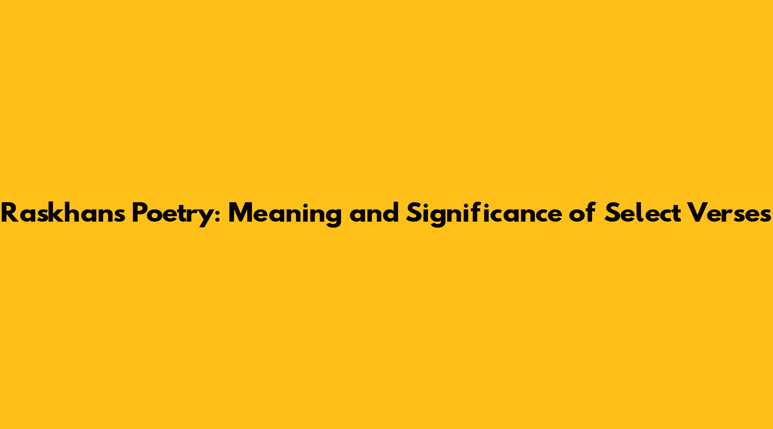 Raskhan's Poetry Meaning And Significance Of Select Verses