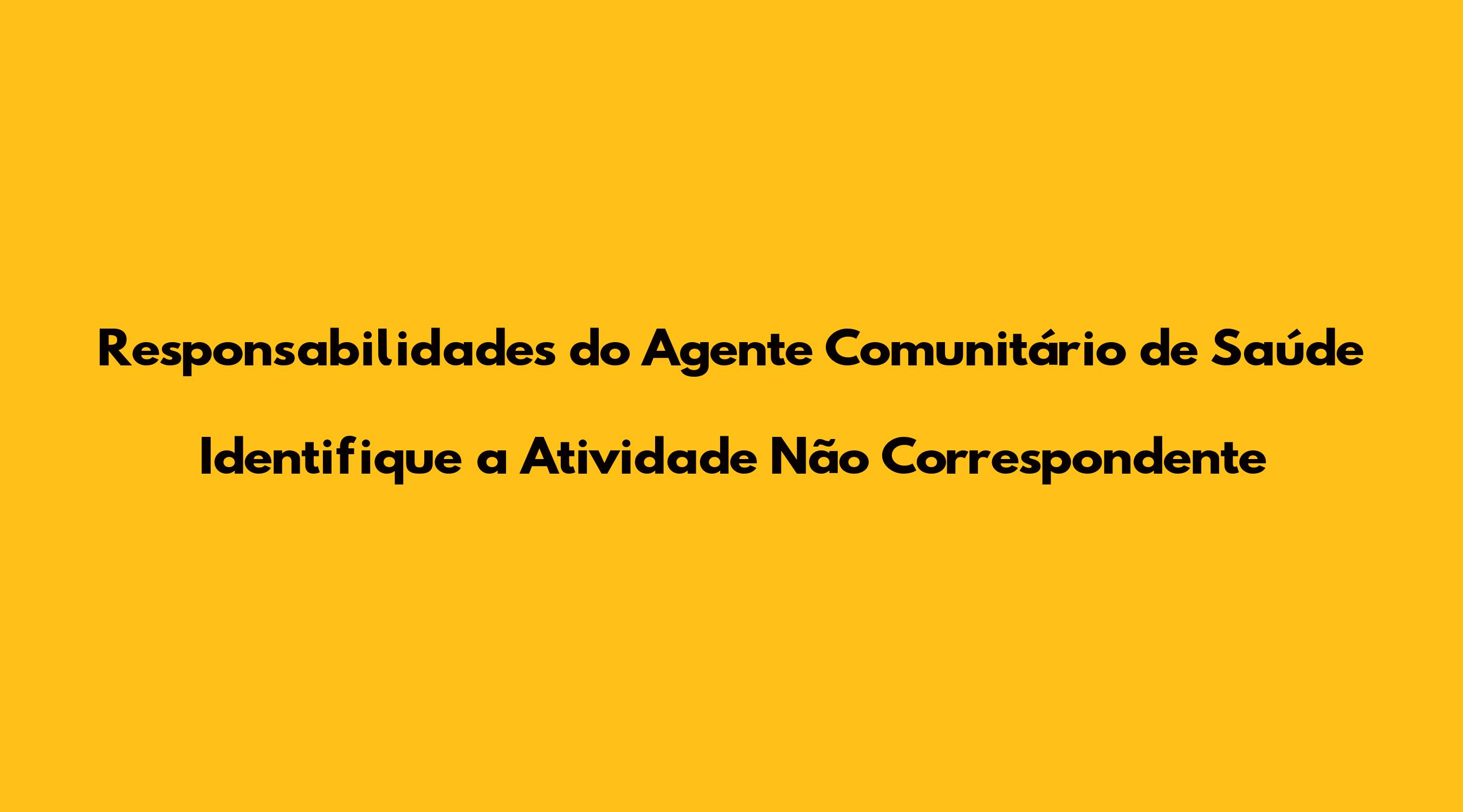 Responsabilidades Do Agente Comunitário De Saúde Identifique A Atividade Não Correspondente