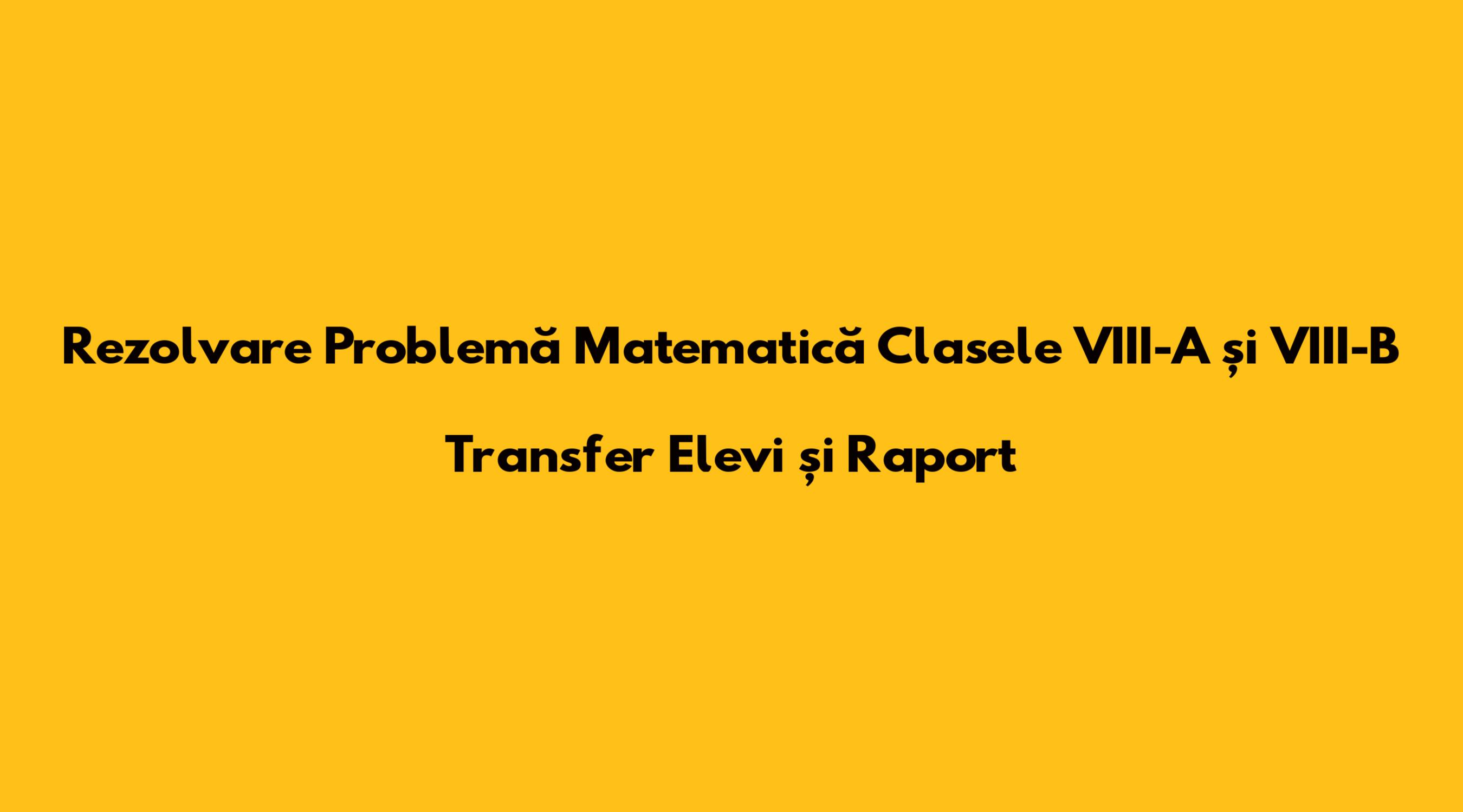 Rezolvare Problemă Matematică Clasele VIII-A Și VIII-B Transfer Elevi Și Raport