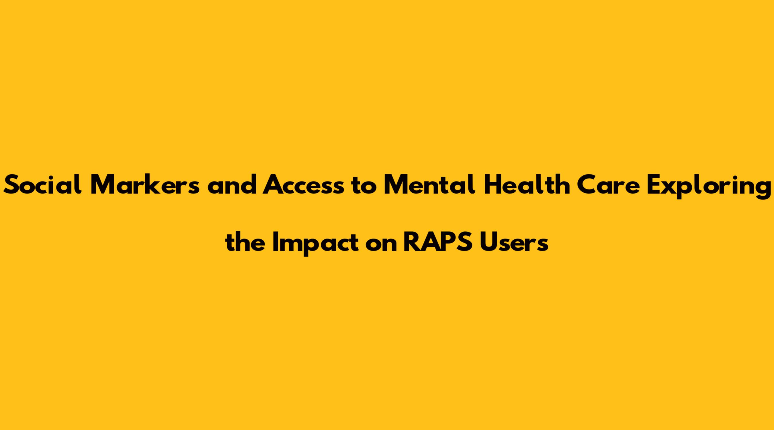 Social Markers And Access To Mental Health Care Exploring The Impact On RAPS Users