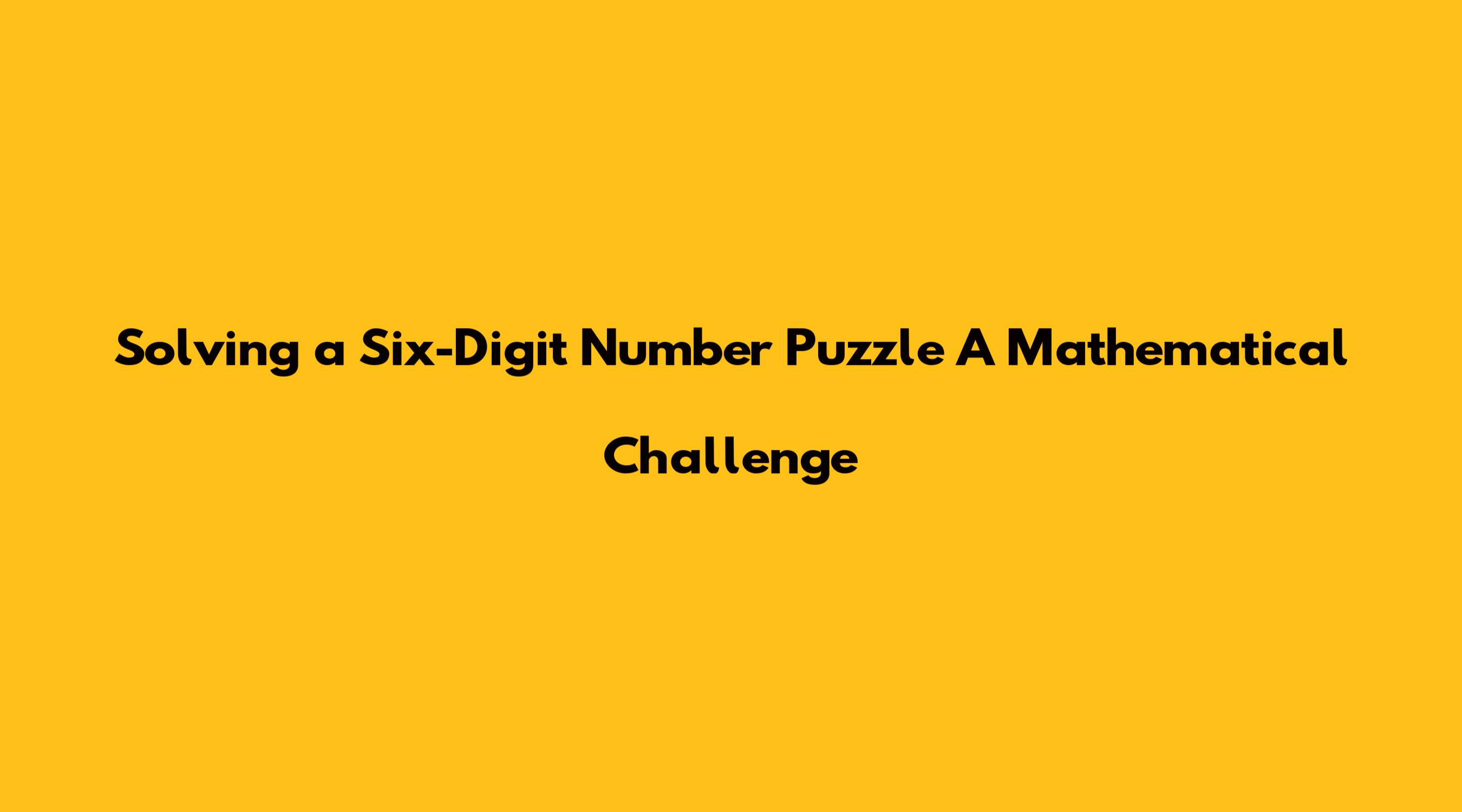 Solving A Six-Digit Number Puzzle A Mathematical Challenge