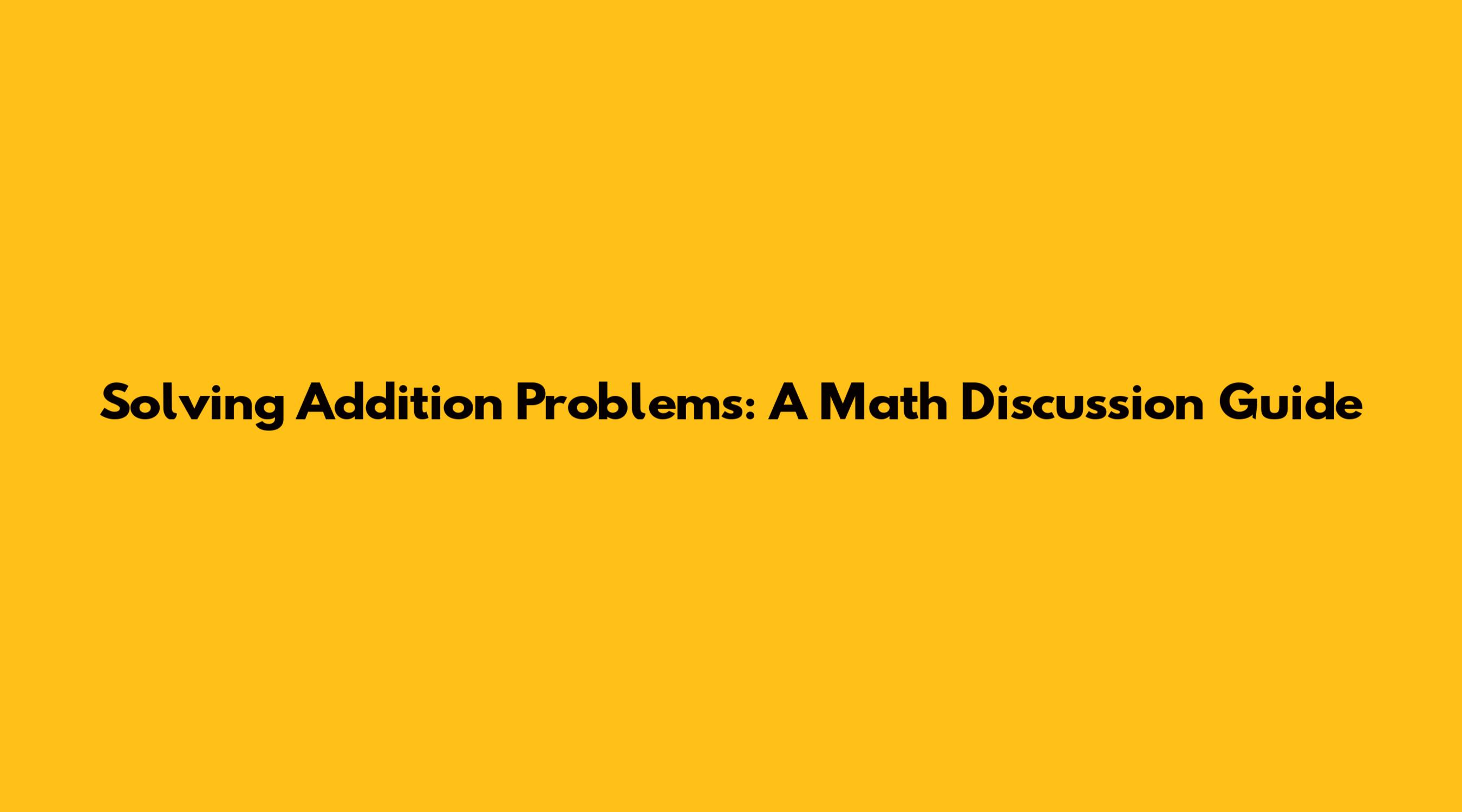 Solving Addition Problems: A Math Discussion Guide