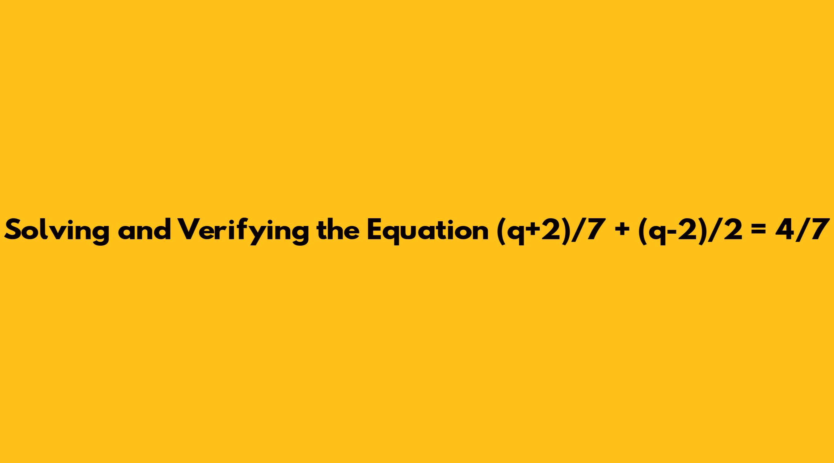 Solving And Verifying The Equation (q+2)/7 + (q-2)/2 = 4/7