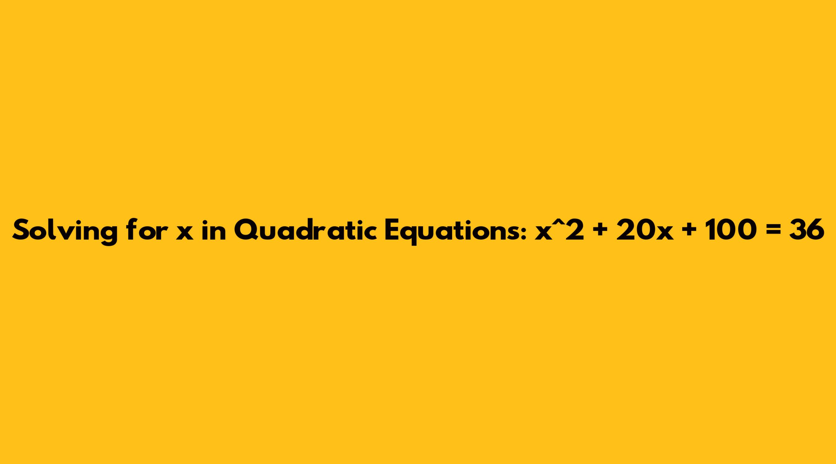 Solving For X In Quadratic Equations X^2 + 20x + 100 = 36
