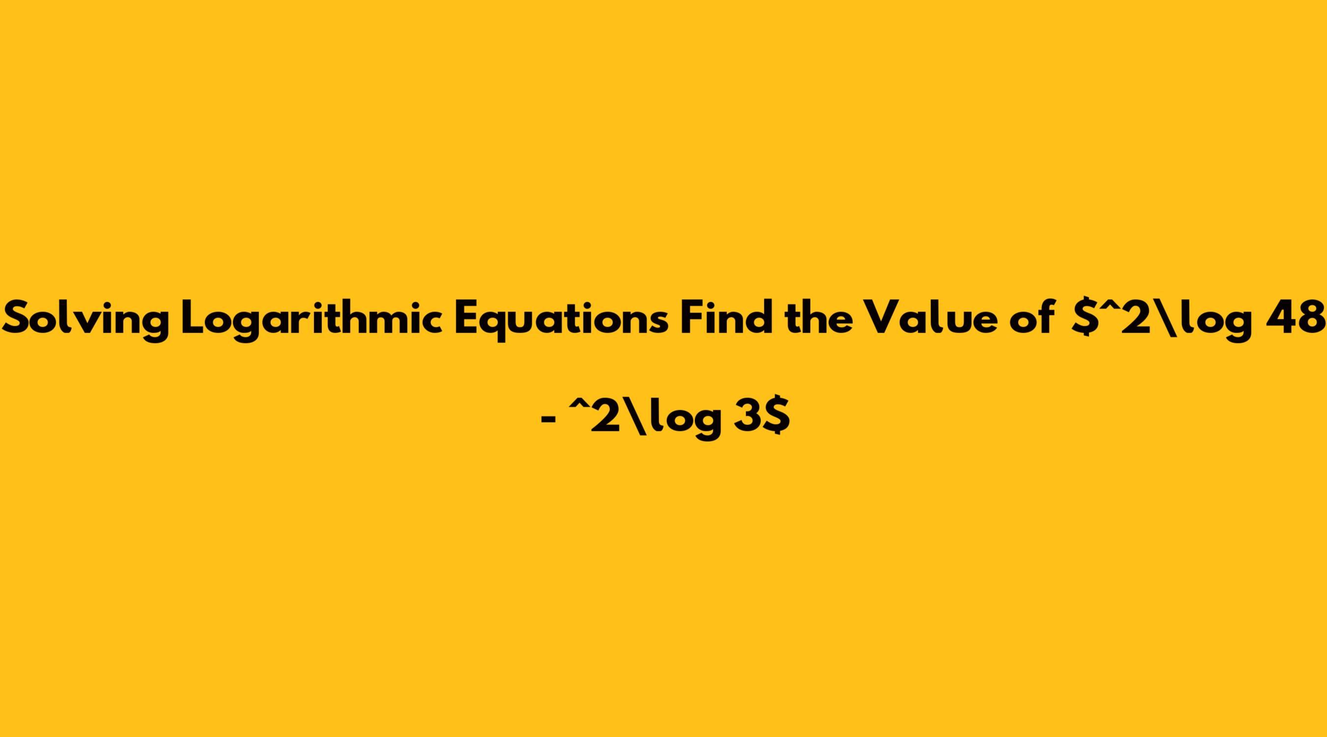 Solving Logarithmic Equations Find The Value Of $^2\log 48 - ^2\log 3$