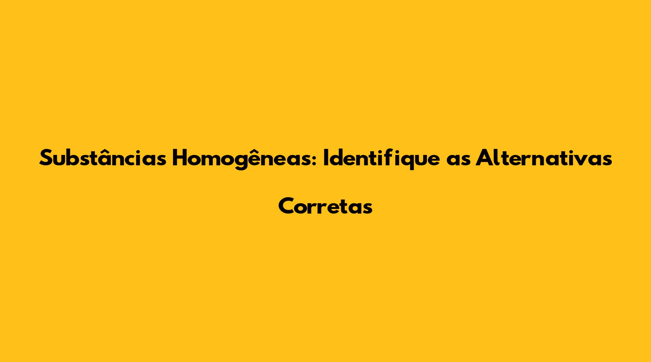 Agora que já dominamos o conceito de substâncias homogêneas, podemos analisar as alternativas apresentadas na pergunta e identificar quais delas contêm apenas esse tipo de substância. Vamos revisar cada opção com atenção: