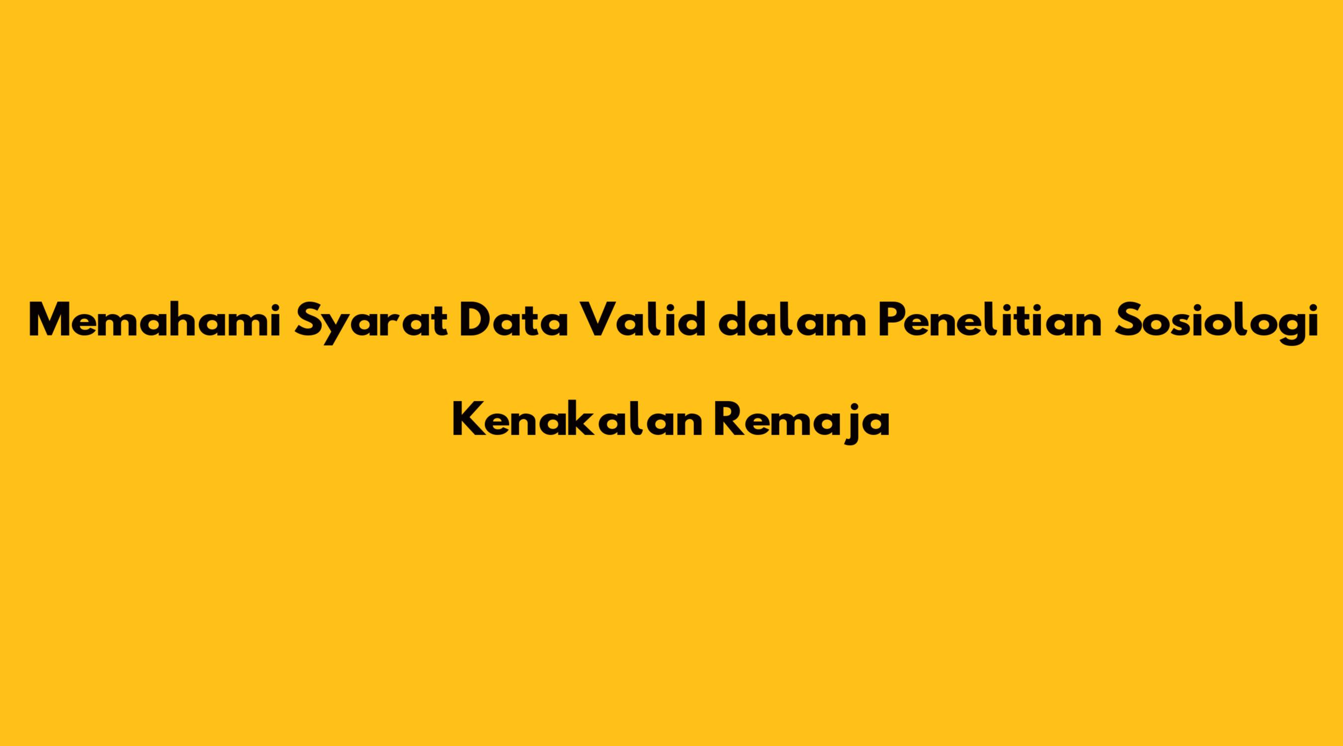 Hey guys! Jadi, kita akan membahas sesuatu yang penting banget nih, terutama buat kalian yang tertarik sama penelitian sosiologi, khususnya tentang kenakalan remaja. Kita akan kupas tuntas syarat-syarat data yang valid dalam penelitian. Kenapa ini penting? Karena data yang valid itu adalah fondasi dari kesimpulan penelitian yang akurat dan bisa diandalkan. Yuk, kita mulai!