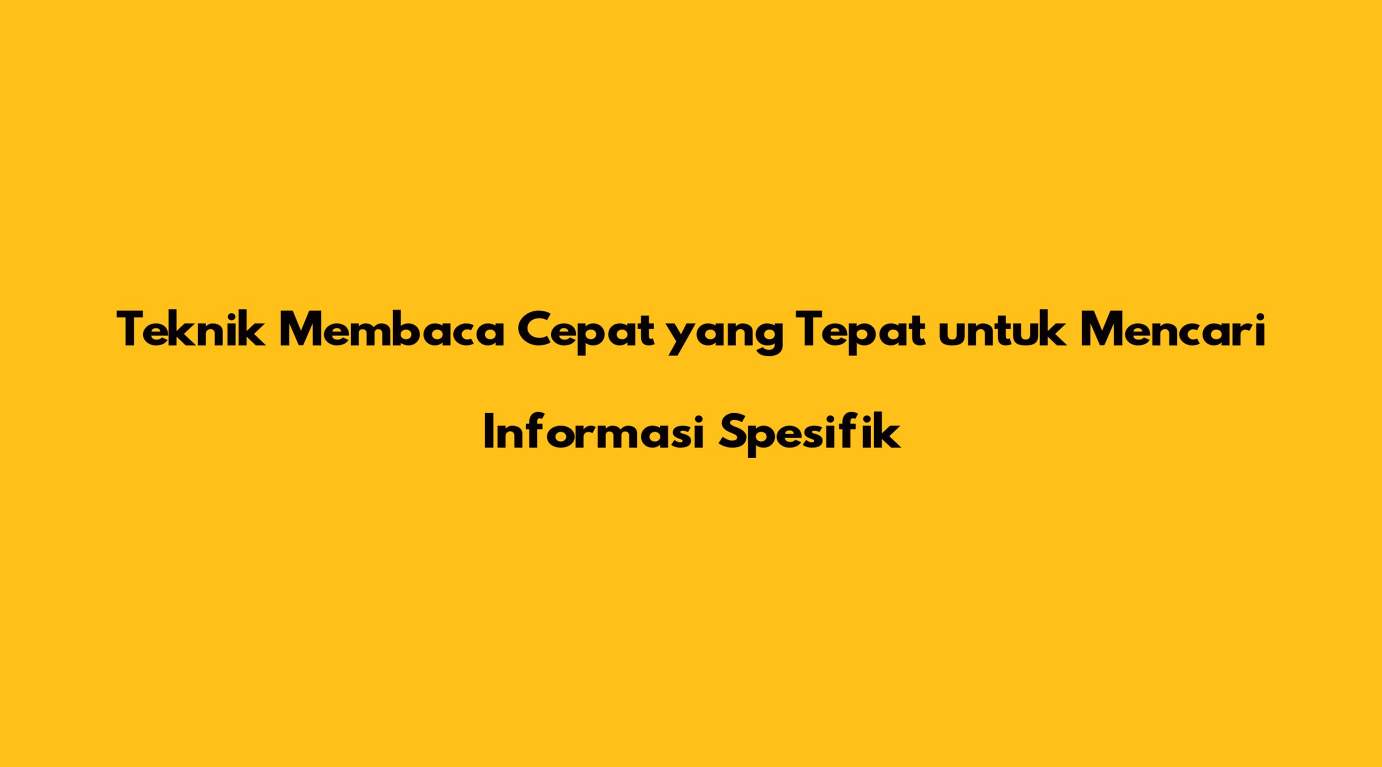Hey guys! Pernah gak sih kalian merasa kewalahan saat harus mencari informasi spesifik dalam tumpukan teks yang tebal? Misalnya, mencari nomor telepon di buku direktori atau mencari arti kata di kamus. Pasti butuh waktu dan tenaga banget kan? Nah, ada lho teknik membaca cepat yang bisa membantu kita mengatasi masalah ini. Teknik ini namanya scanning, dan di artikel ini kita bakal bahas tuntas tentang teknik ini, kenapa efektif banget buat mencari informasi spesifik, dan gimana cara menerapkannya.