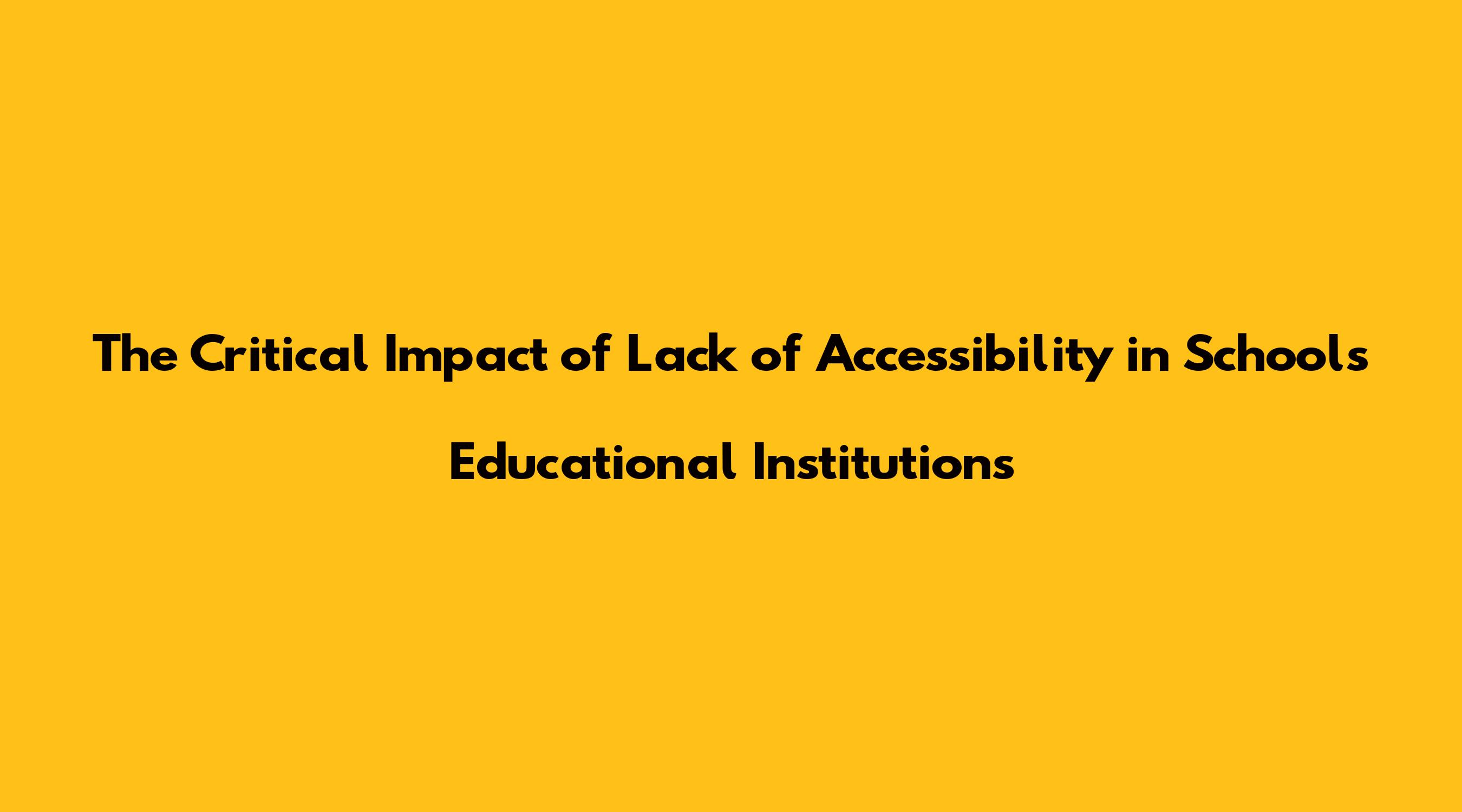 The Critical Impact Of Lack Of Accessibility In Schools Educational Institutions