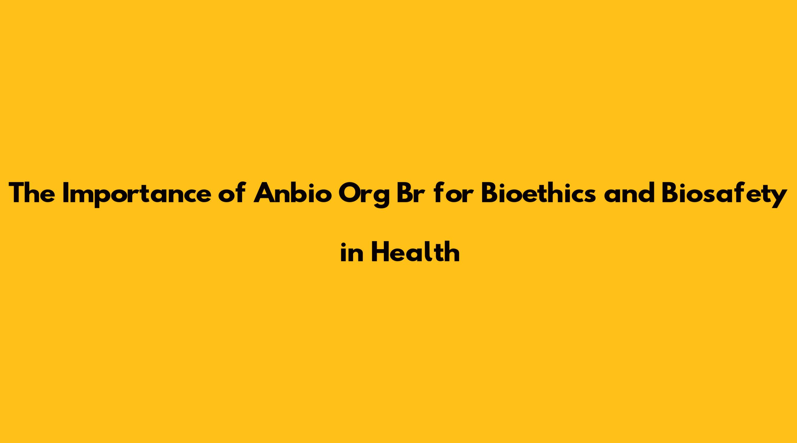 The Importance Of Anbio Org Br For Bioethics And Biosafety In Health