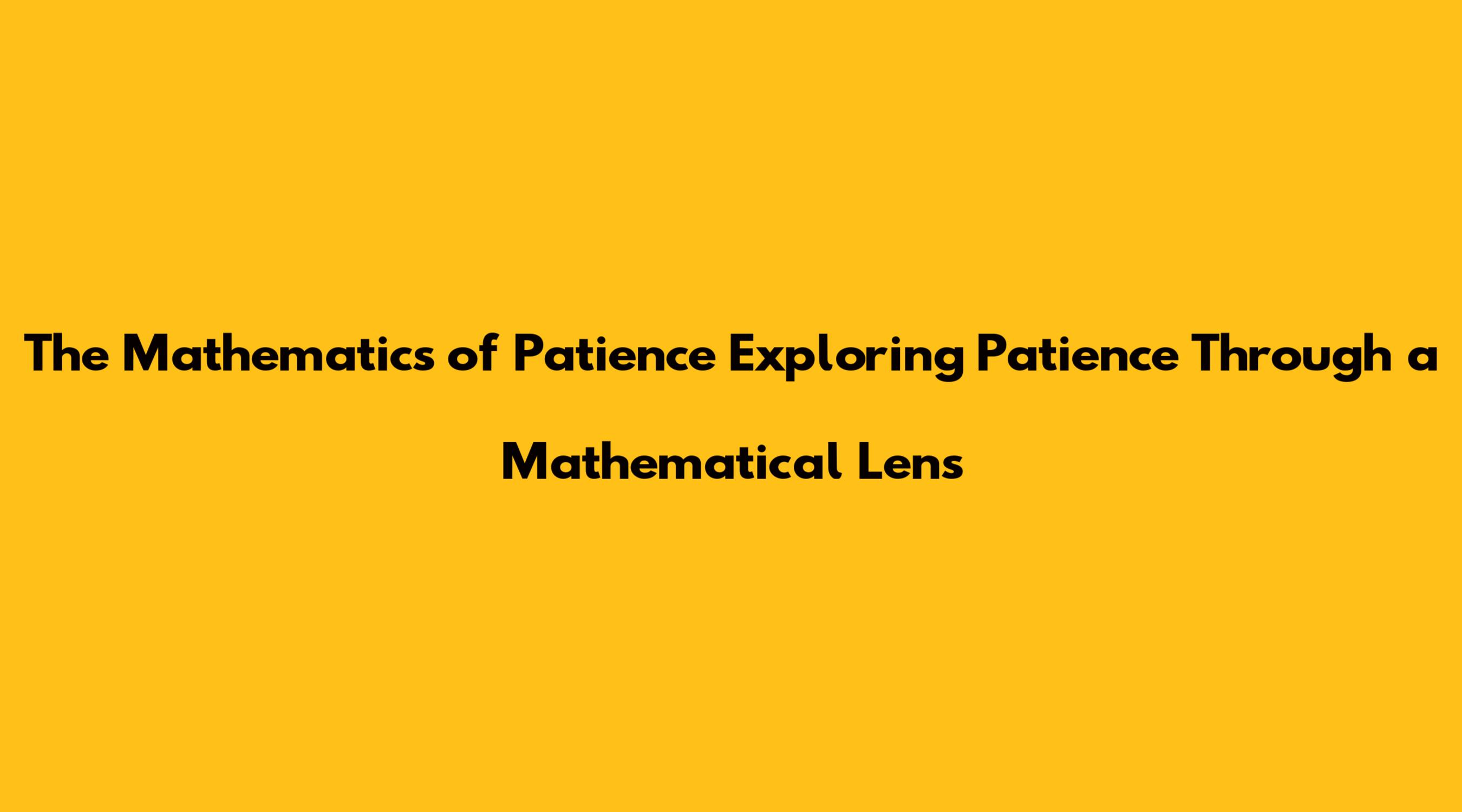 The Mathematics Of Patience Exploring Patience Through A Mathematical Lens