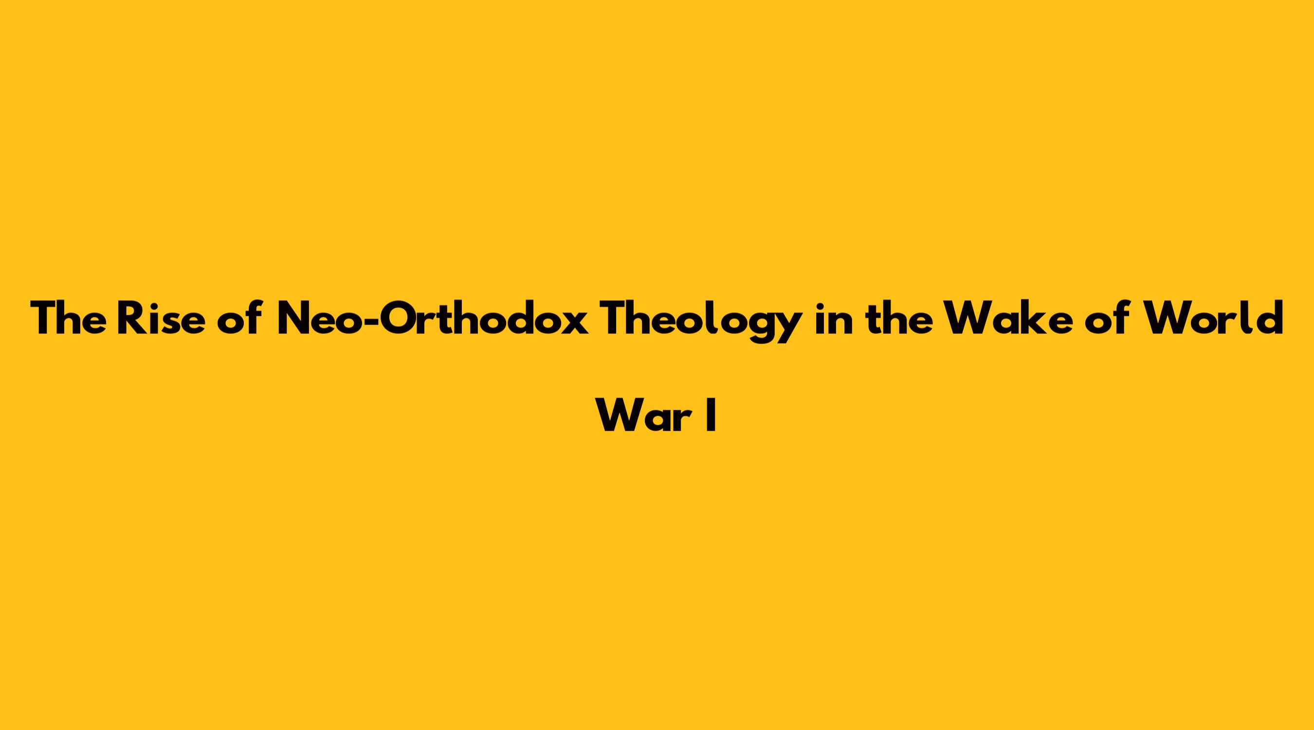 The Rise Of Neo-Orthodox Theology In The Wake Of World War I