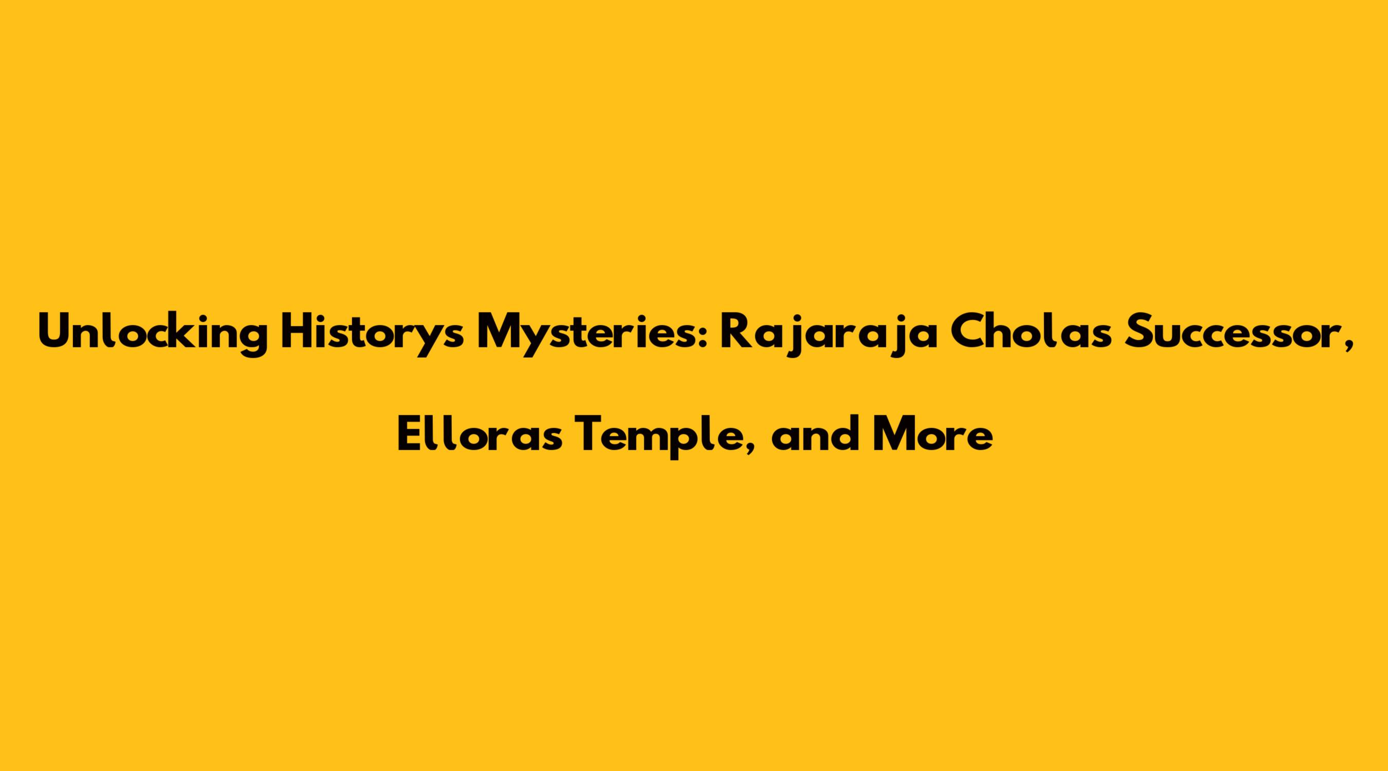 Unlocking History's Mysteries: Rajaraja Chola's Successor, Ellora's Temple, And More